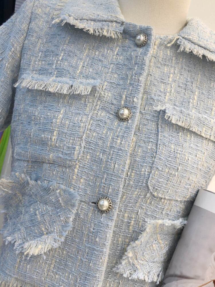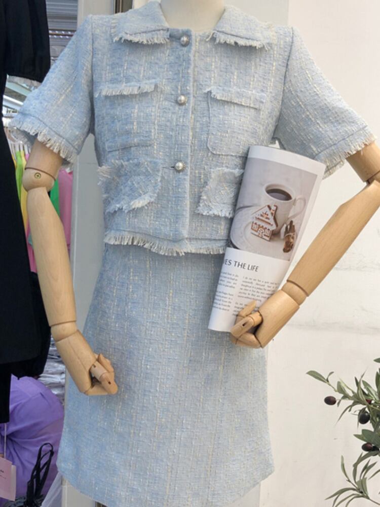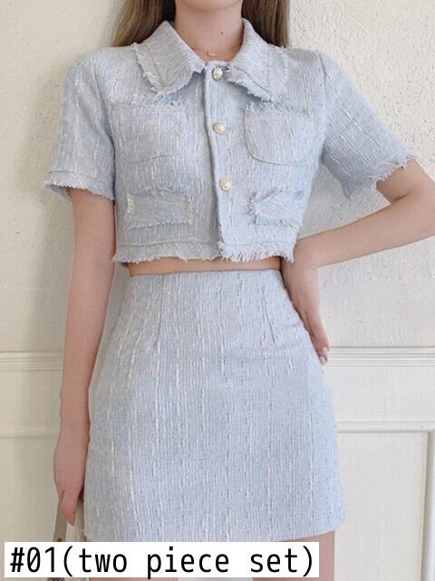 スカートスーツツイードツーピースセット女性クロップトップミニスカートセットツーピース衣装 mes66663297755