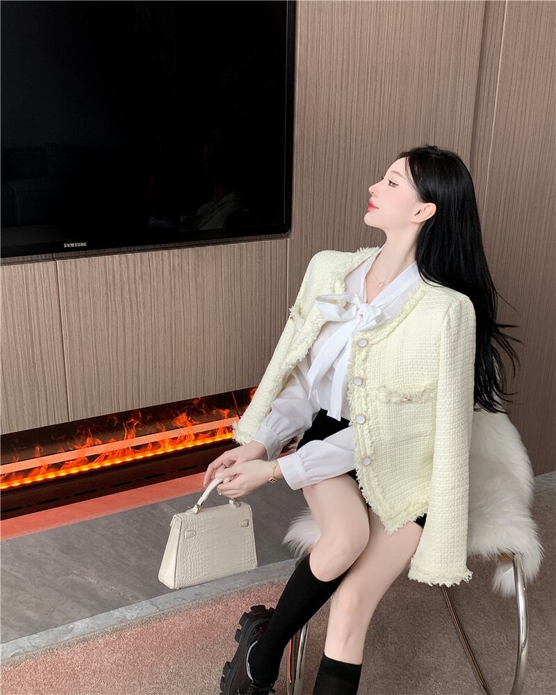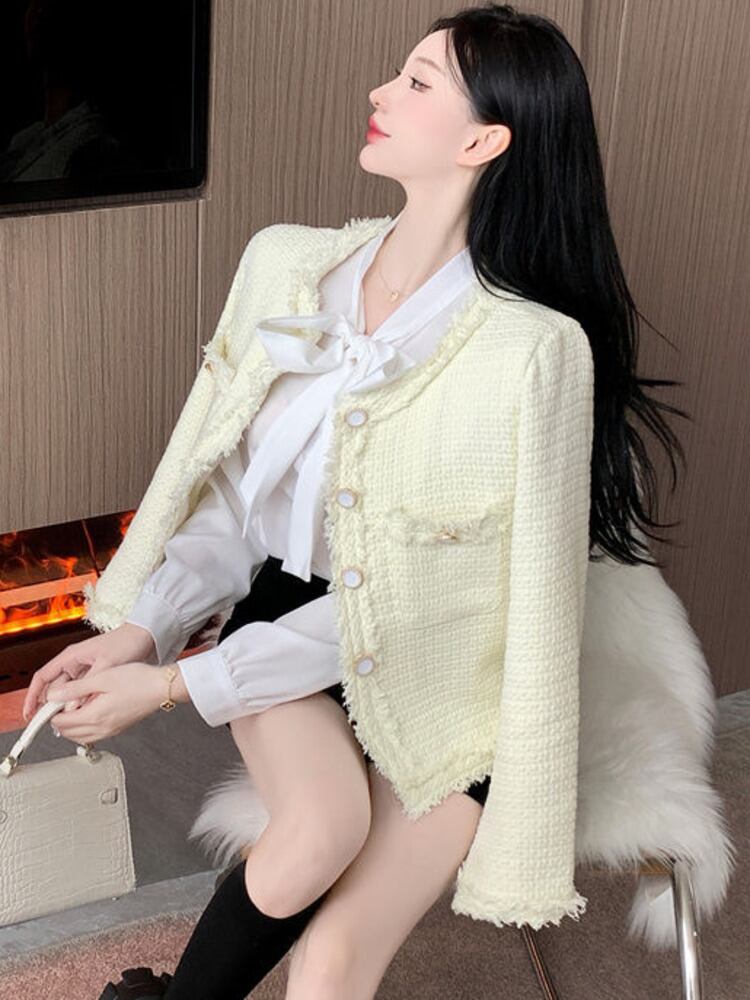 秋冬滑走路ツイード女性の小さな香りウールコート高級ウールジャケット Casaco 生き抜くトップ オータム 秋物 ウィンター 冬物 mes90264073294