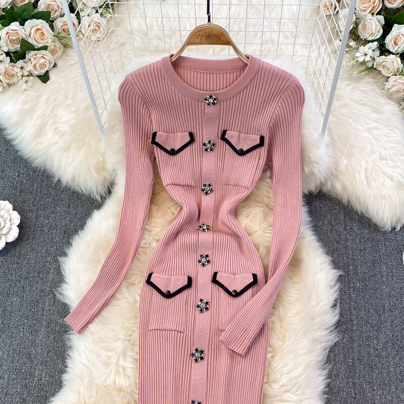 小さなフレグランスシースボディコン底セータードレス女性秋のニットドレスパーティー Vestidos オータム 秋物 mes42019785799