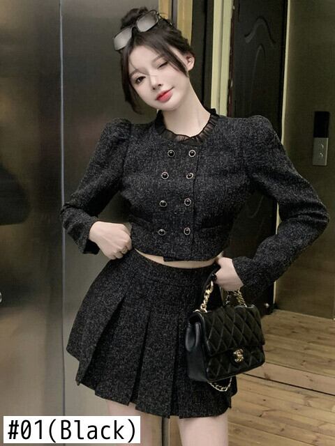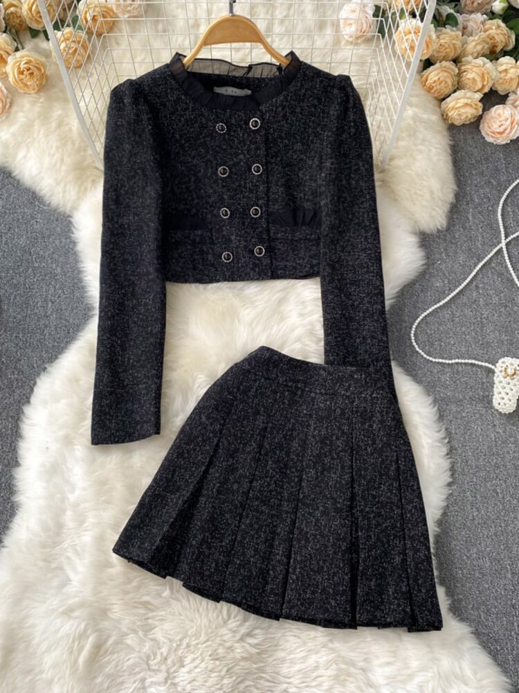 スモールフレグランス 2点セット レディース 長袖 ショートジャケット コート + プリーツスカート スーツ 2点セット ロング mes7516059252