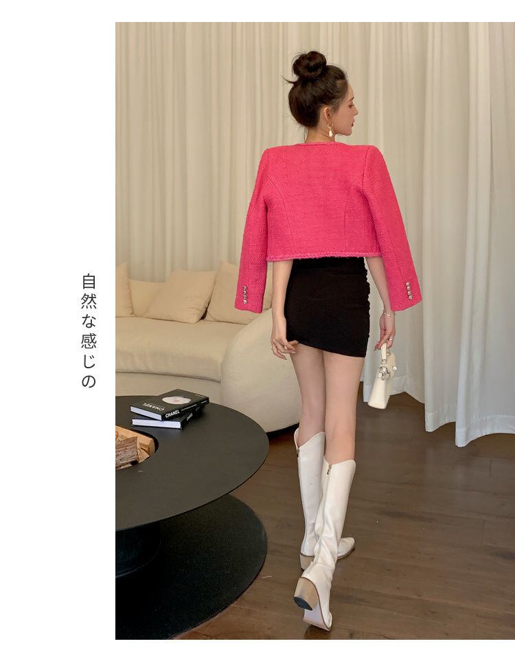 スウィート スモール フレグランス ツイード ジャケット コート レディース 秋冬 フリード ストリート ショートコート アウター 大人ガーリー キュート カジュアル オータム 秋物 ウィンター 冬物 mes61462256954