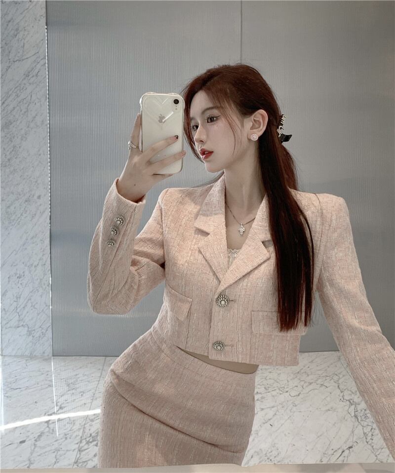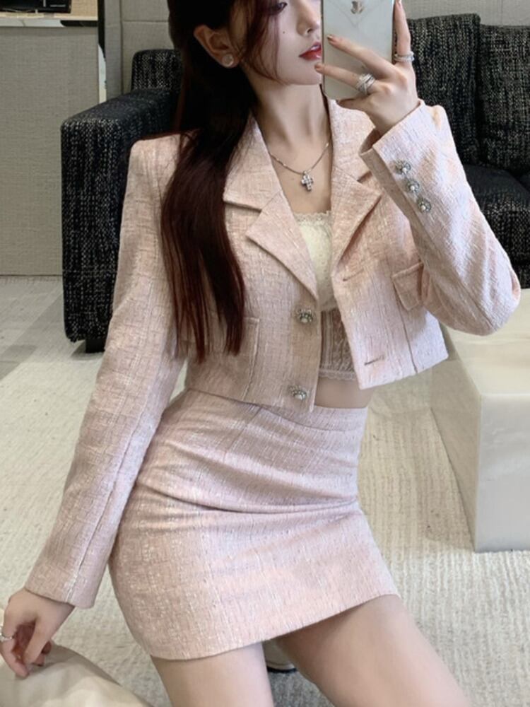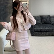 ツイードツーピースセット女性ウールジャケットコートクロップトップ & ボディコンミニスカートスーツ秋冬スウィート 2 ピースセット 大人ガーリー キュート カジュアル オータム 秋物 ウィンター 冬物 mes46958904375