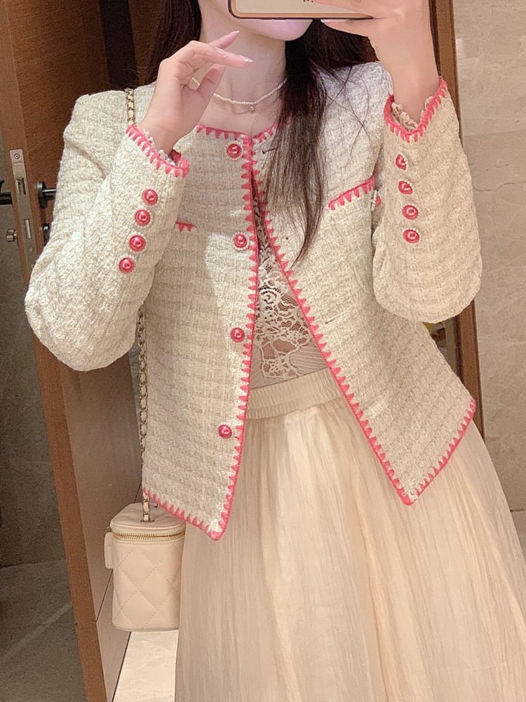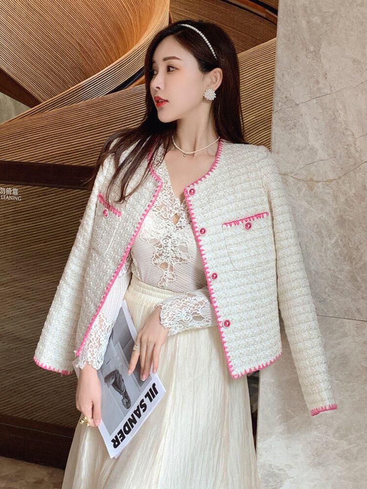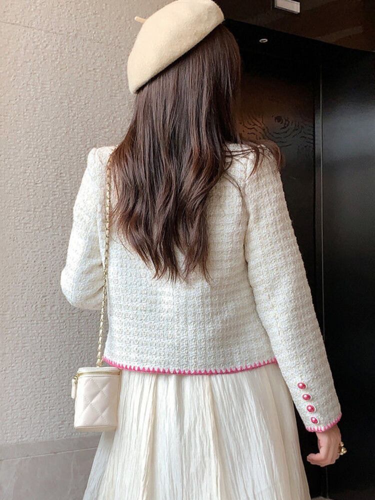 高級フレンチスモールフレグランスツイードジャケットコート女性スウィートウールコート上着 大人ガーリー キュート カジュアル mes33848177881