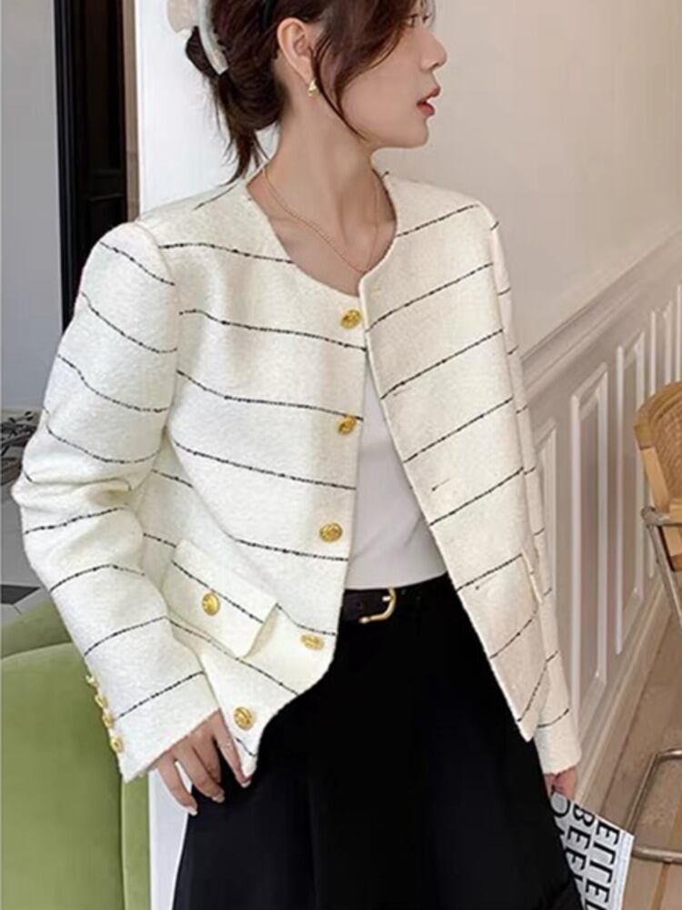 小さなフレグランス ツイード ジャケット コート女性秋冬フレンチ ウール生き抜く女性コート ウィンター 冬物 mes78899951405