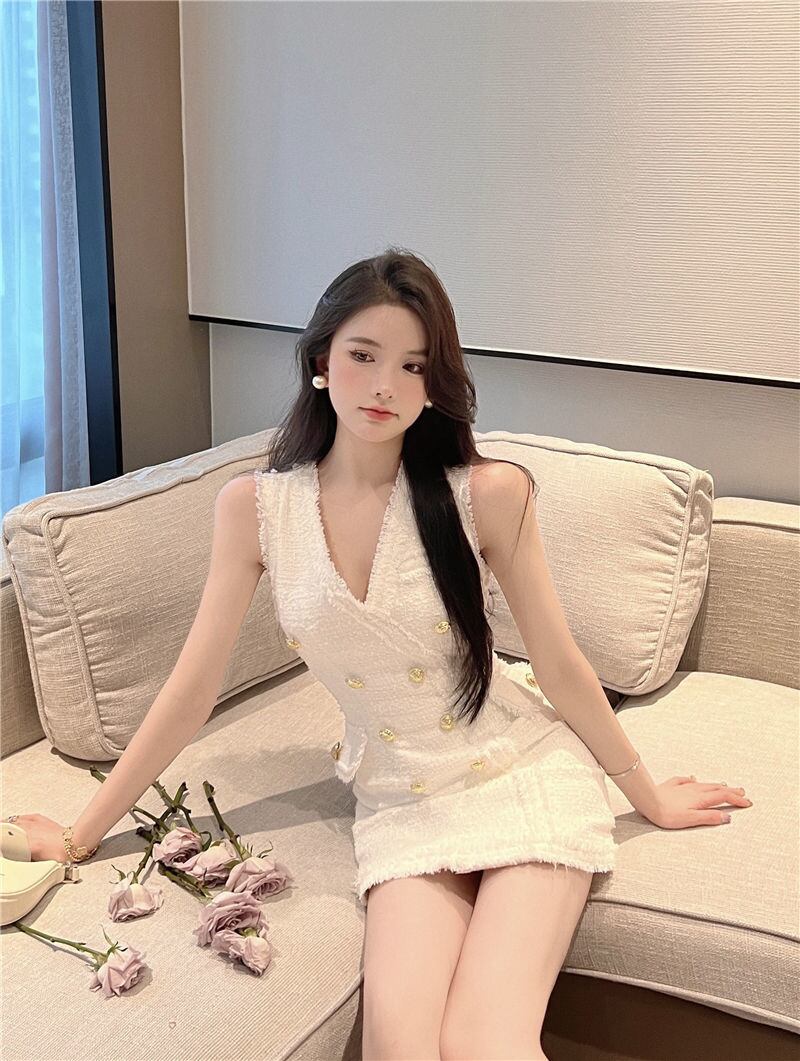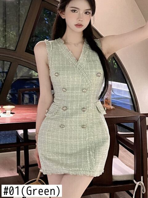 フランスの小さい芳香のツイードの服の女性のウールの夏のドレス パーティー Vestidos サマー 夏物 mes1890869569