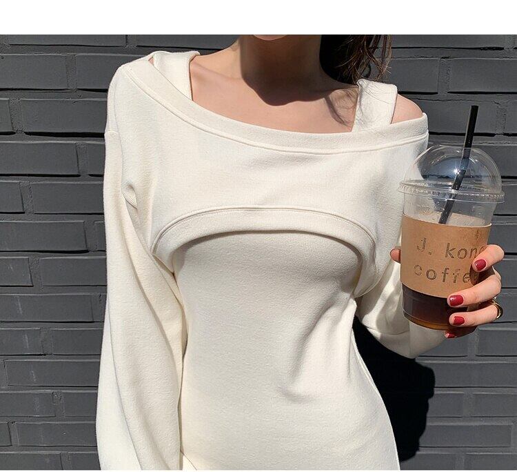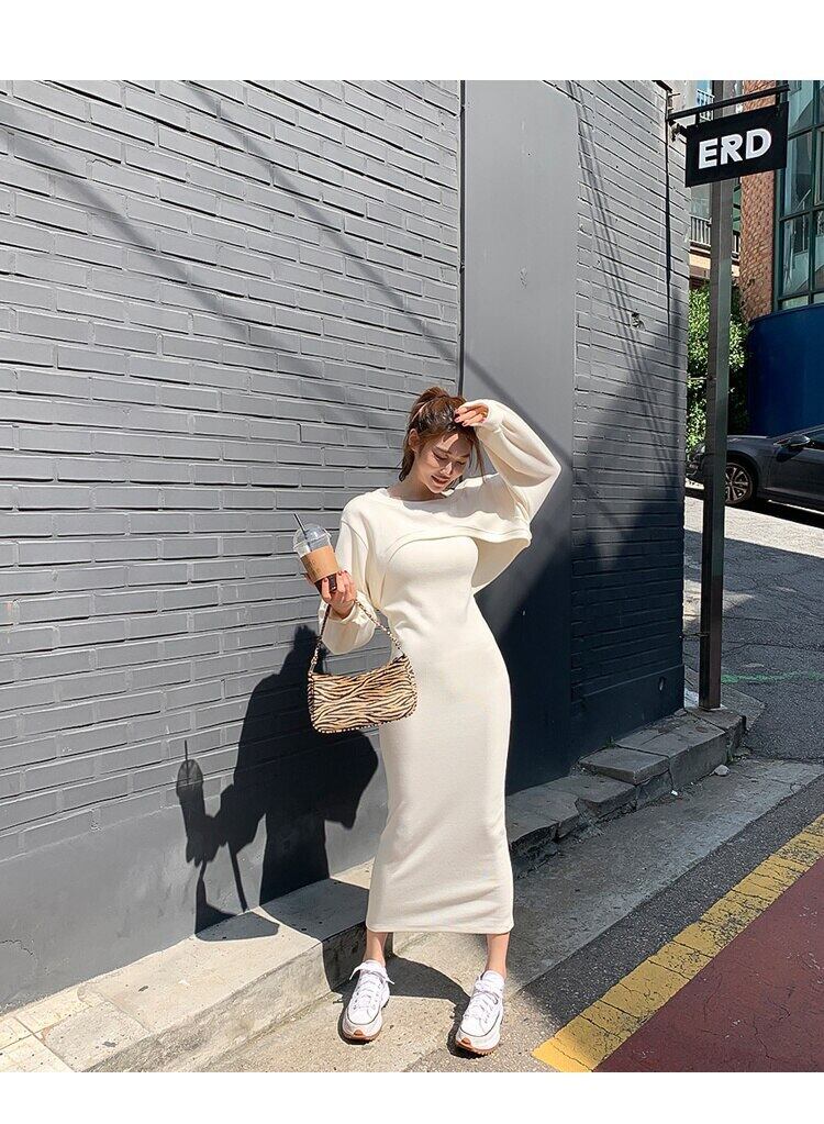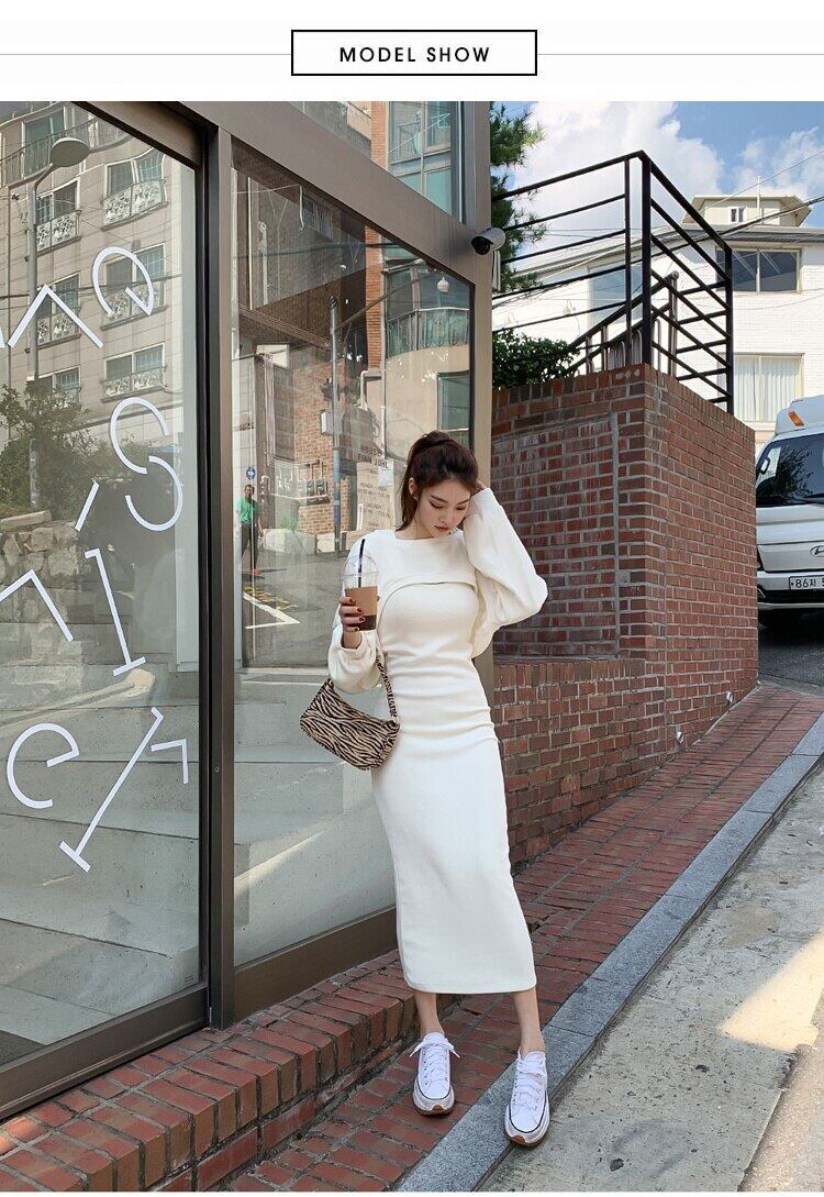 秋冬ツーピースセット女性衣装ルースプルオーバートップ + スリムロングドレススーツ オータム 秋物 ウィンター 冬物 mes13066645862