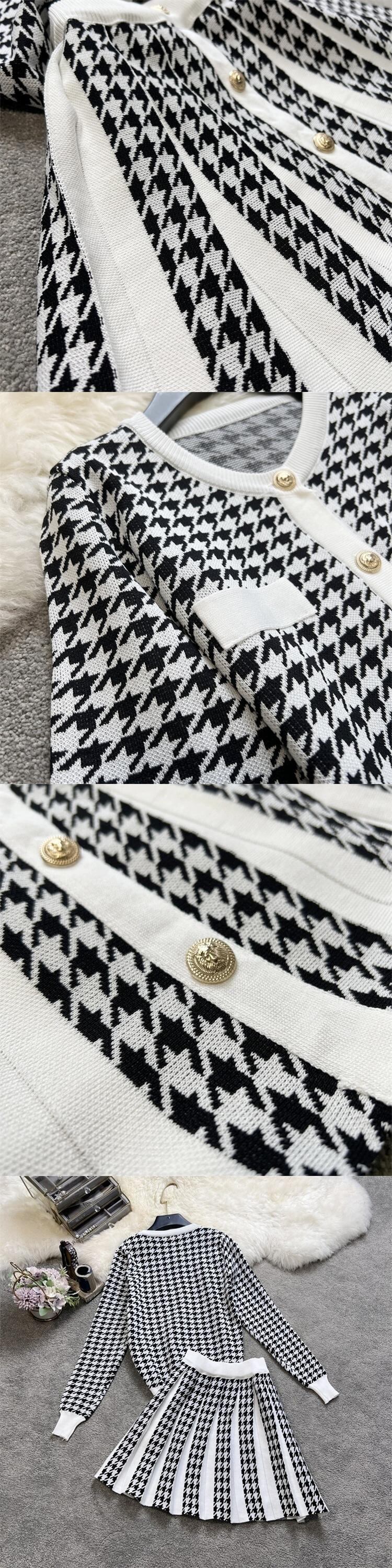 小さなフレグランス ニット ツー ピース セット女性セーター カーディガン コート クロップ トップ + スカート セット 2 ピース スーツ mes16778833279