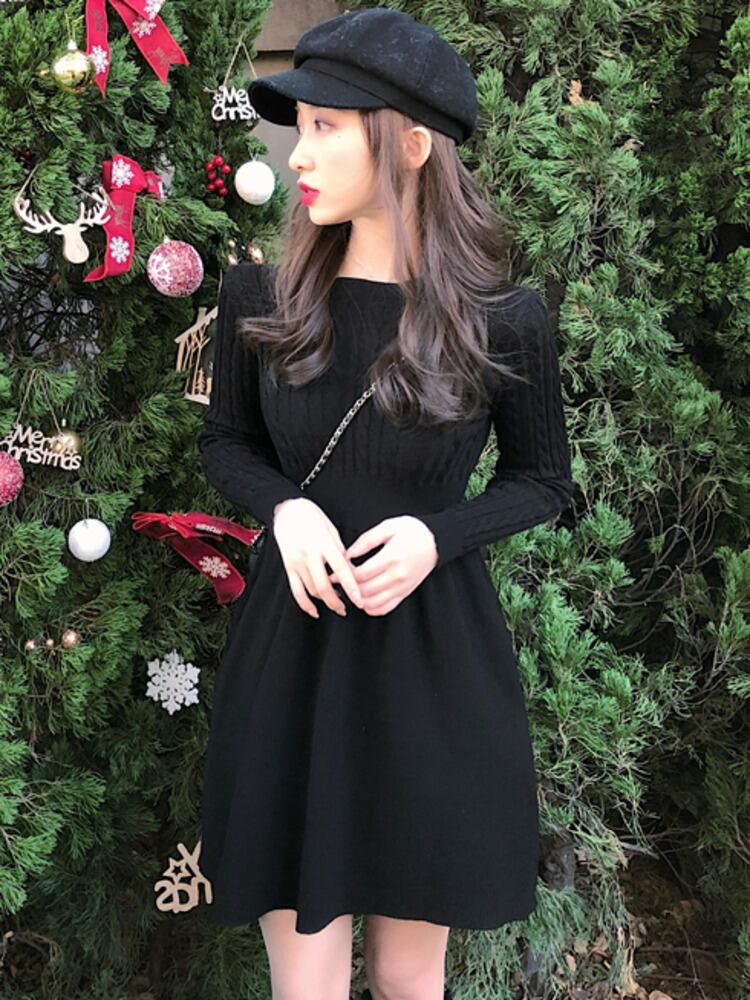 秋冬ニットセータードレス女性 A ラインソリッドウエスト Vestidos ミニドレス オータム 秋物 ウィンター 冬物 Aライン ソリッドカラー mes64119386134