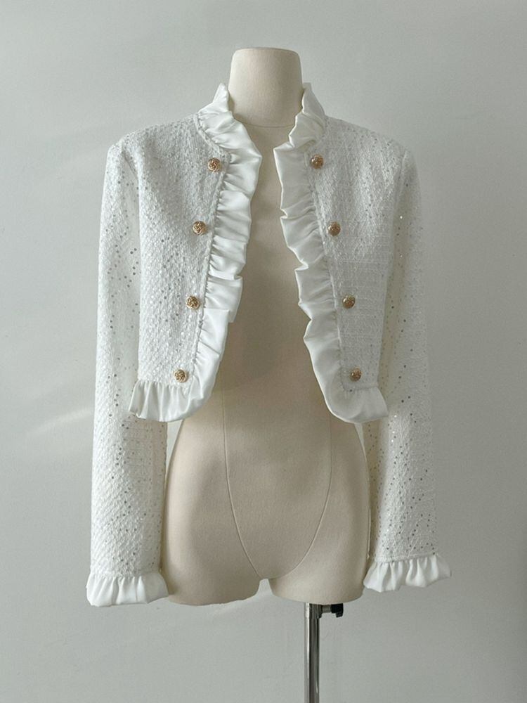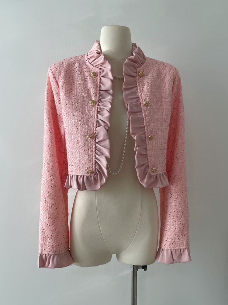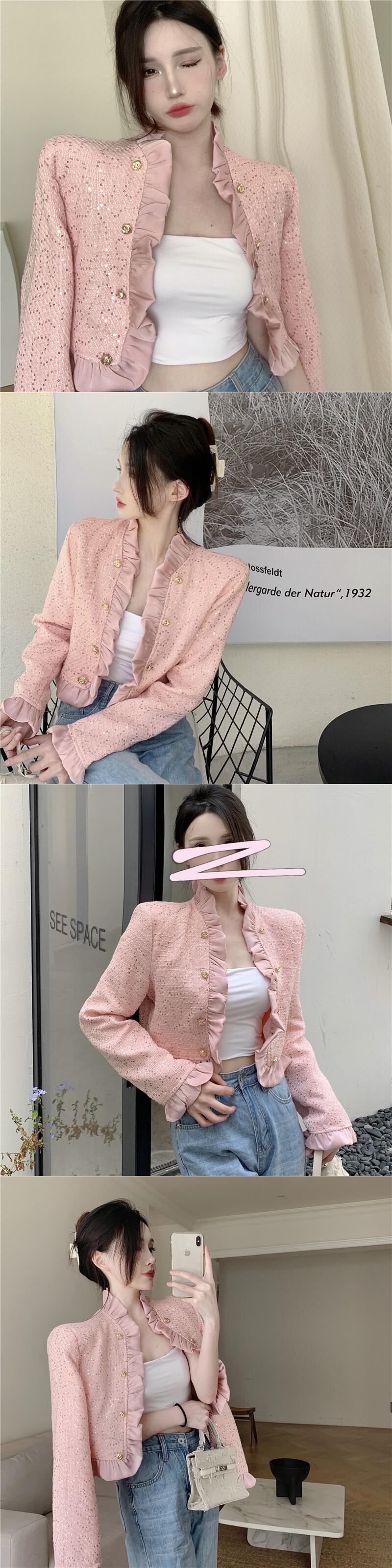 小さなフレグランススパンコールフリルツイードジャケットコート女性フレンチスタイルウールショートコートガールスウィート生き抜く Casacos 大人ガーリー キュート カジュアル mes97539495679