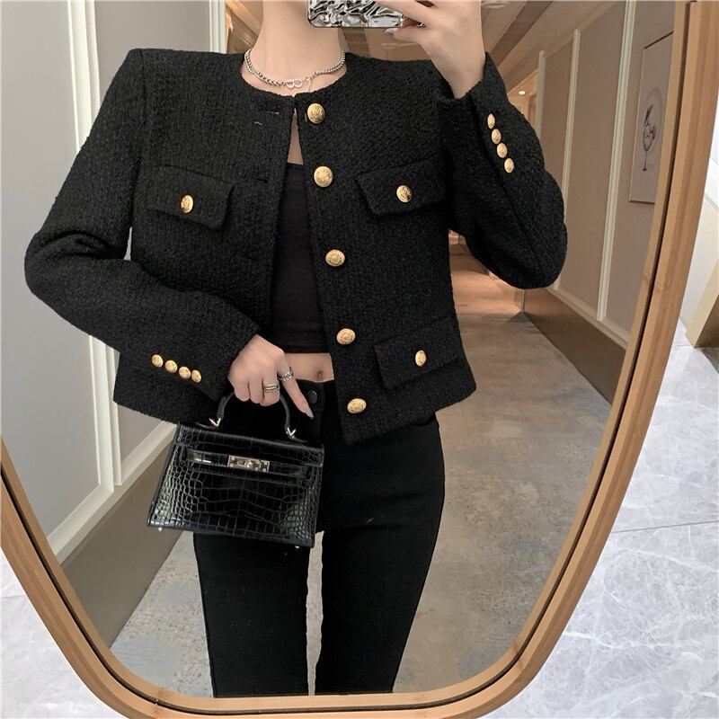 秋冬フレンチスモール香りツイードジャケットコート女性ウールショートコートストリート生き抜くクロップトップ ウィンター 冬物 mes90920562343