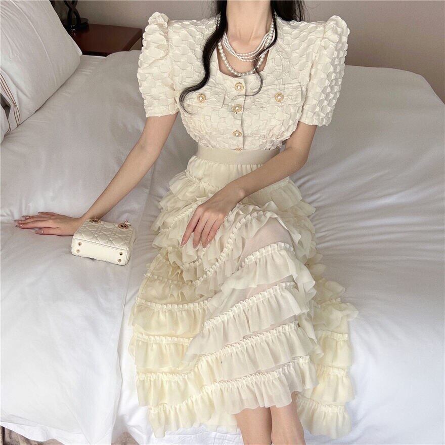 甘いツーピースセット女性シャツブラウスクロップトップ & レイヤーのケーキスカートスーツシックな夏 2 ピース衣装 大人ガーリー スウィート キュート カジュアル サマー 夏物 mes75352924502