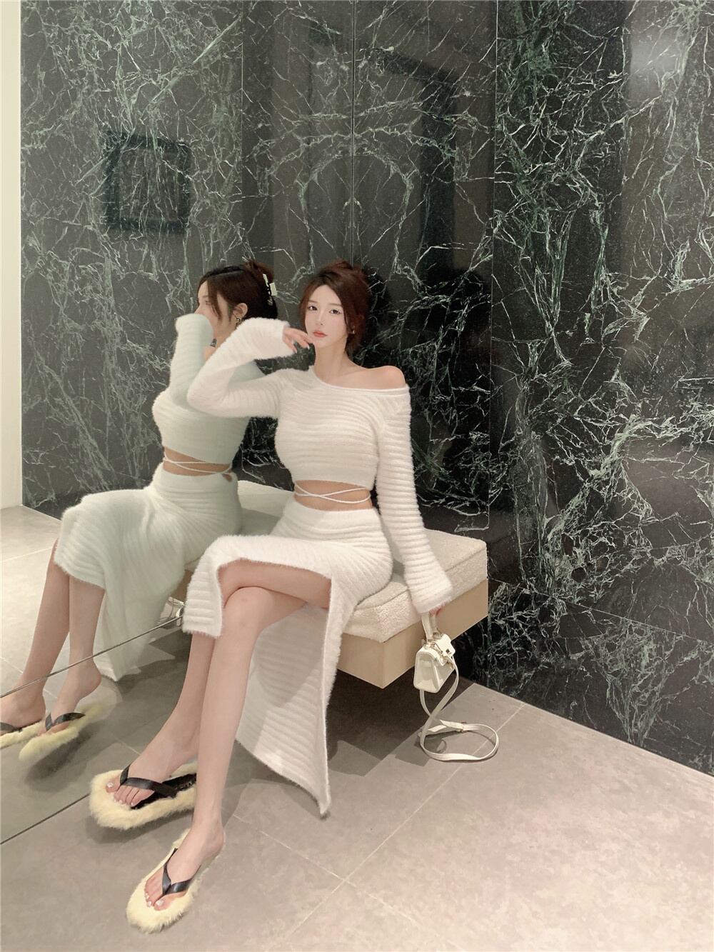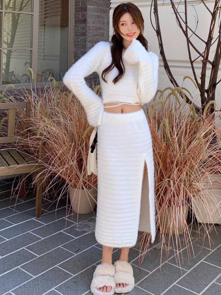 プルファムハイバー秋冬服女性セーター女性プルオーバースカートツーピースセットレディース衣装アンサンブルファム オータム 秋物 ウィンター 冬物 フェミニン mes30720576116