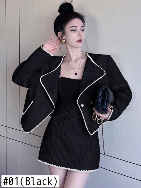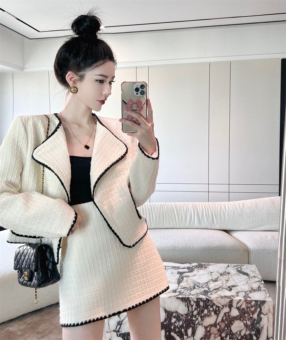 秋のツーピースセットレディース衣装ショートルースコートジャケット + ショートスカートセット conjuntos デファルダアンサンブルファム 2 ピース オータム 秋物 フェミニン mes63109611690