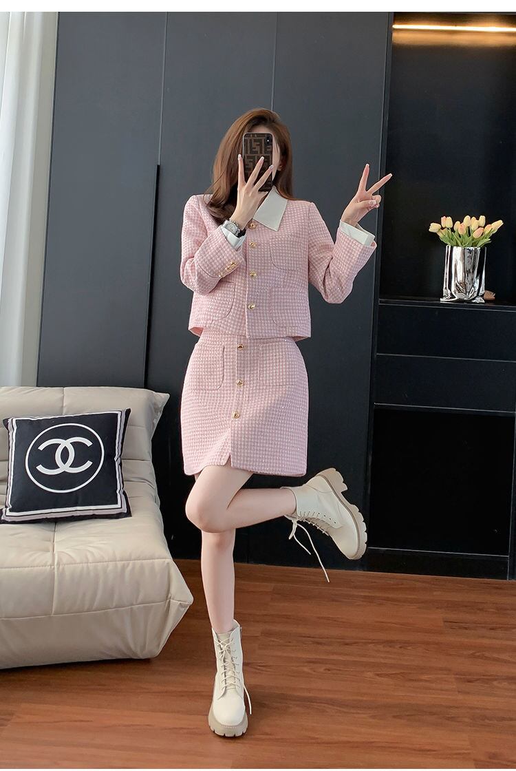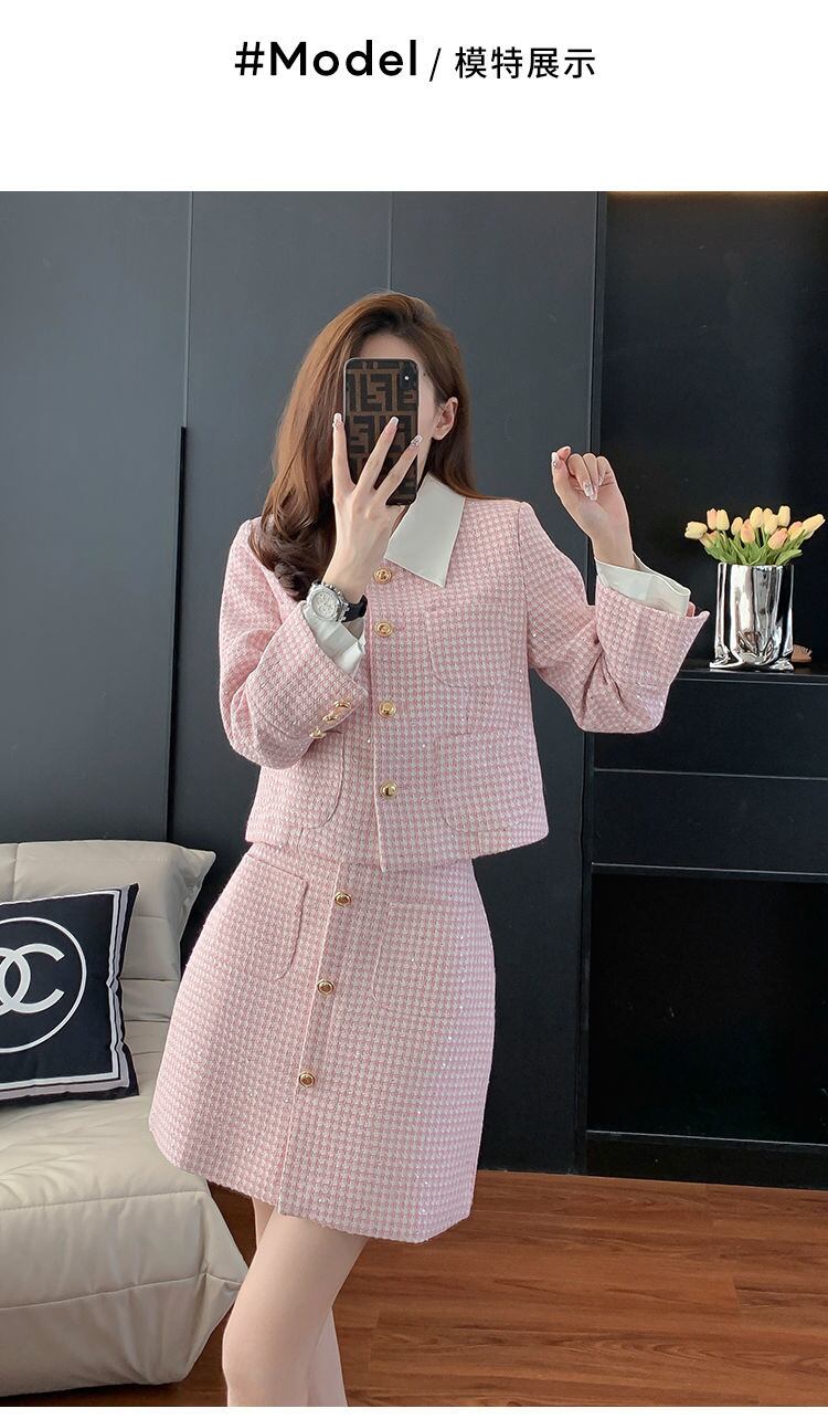 高級スパンコール小さな香りツイード 2 点セット女性ショート ジャケット コート + スカート セット甘い 2 ピース スーツ 大人ガーリー スウィート キュート カジュアル mes80413800116