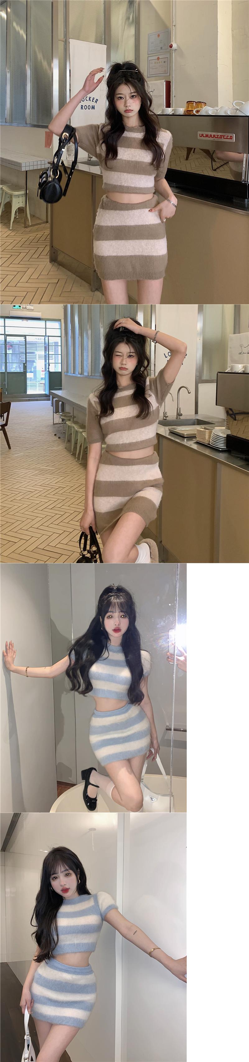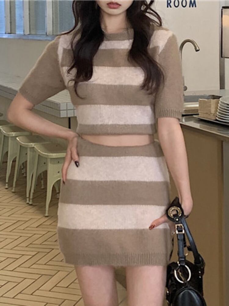 甘いニットセクシーな衣装女性クロップトップ + ボディコンスカートスーツガールズショートプルオーバーセーター & ミニスカート 2 点セット 大人ガーリー スウィート キュート カジュアル mes53531747512