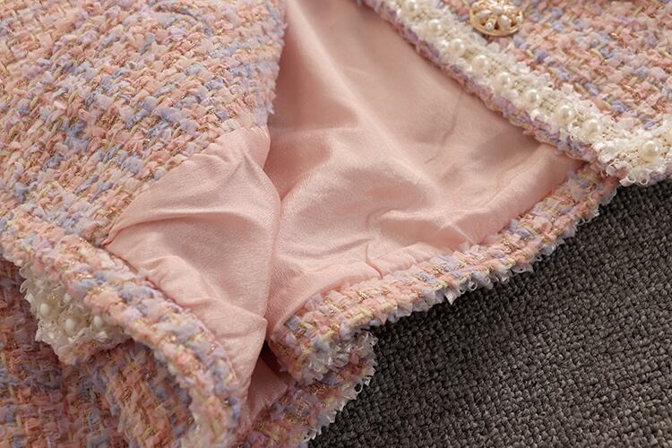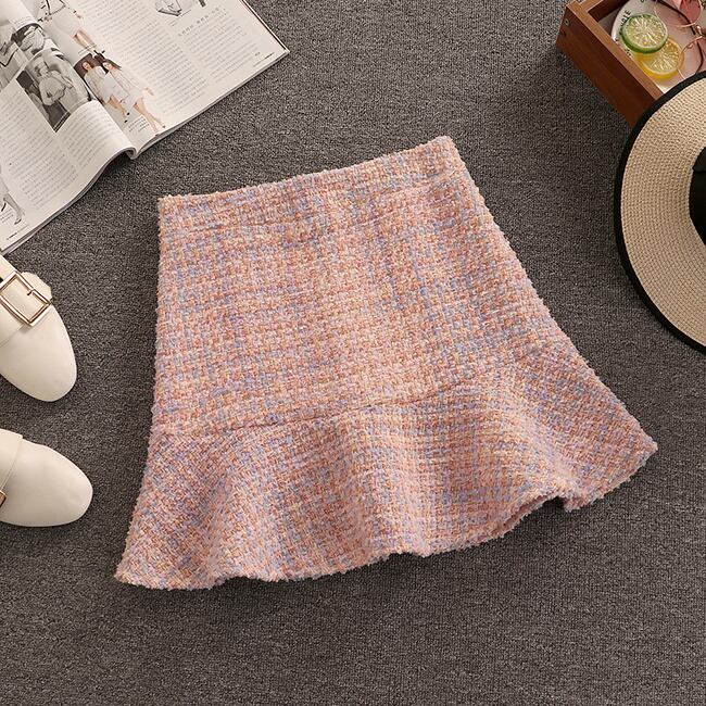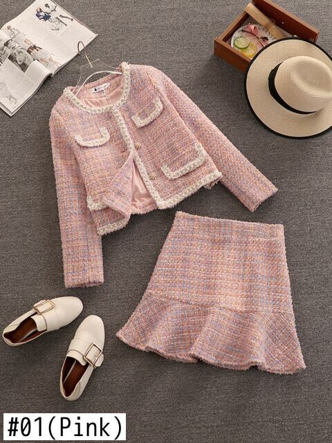 秋冬チェック柄ツイードスカート 2 点セット女性ウールショートジャケットコート + マーメイドスカートスーツ甘い 2 点セット 大人ガーリー スウィート キュート カジュアル ウィンター 冬物 mes63674869674