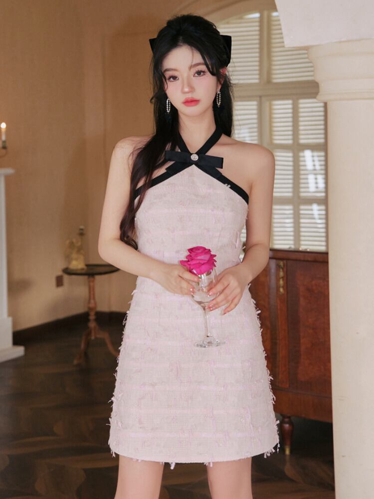 高級小さな香りツイードパーティードレス女性 HotSweet ノースリーブのセクシーなサマードレススリム Vestidos 大人ガーリー スウィート キュート カジュアル 夏物 mes91225420694