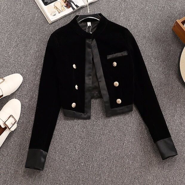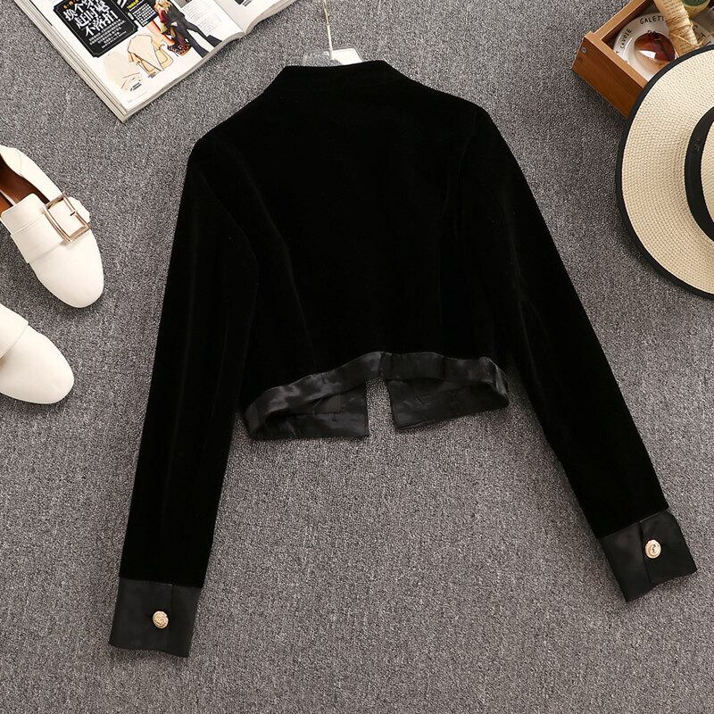 ベルベット 2 点セット女性秋冬レトロスタンドカラーパンツスーツショートジャケットコート + ショーツ 2 点セット女性ショーツスーツ オータム 秋物 ウィンター 冬物 ブルマー mes88379554224