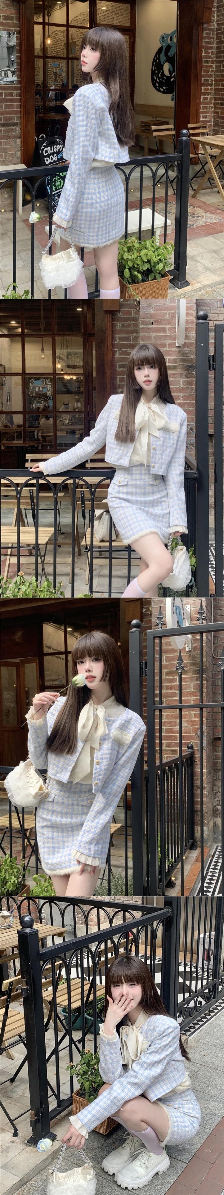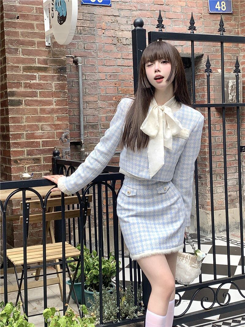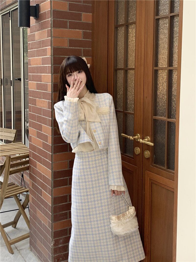 秋冬ツーピースセットレディース衣装ツイードコートクロップトップ + スカートスーツ conjuntos feminino エレガンテアンサンブルファム エレガント オータム 秋物 ウィンター 冬物 フェミニン mes4362143076