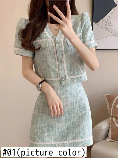 フレンチスモールフレグランスツーピースセットレディースショートジャケットコート+ミニスカートセットサマー2ピース衣装 夏物 mes56131986220