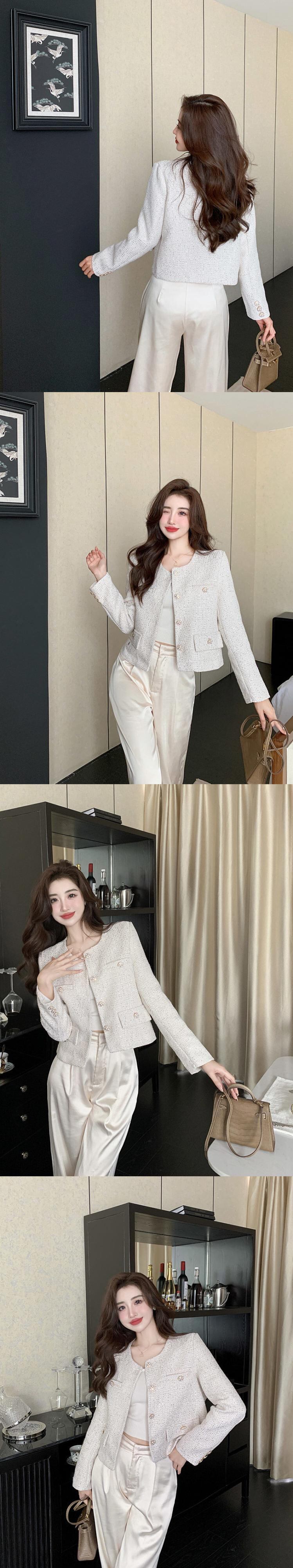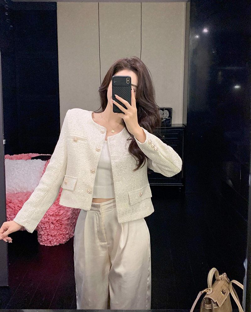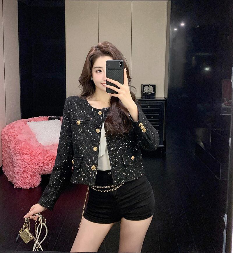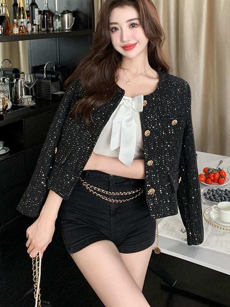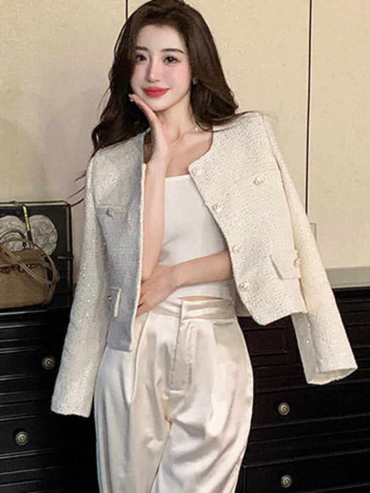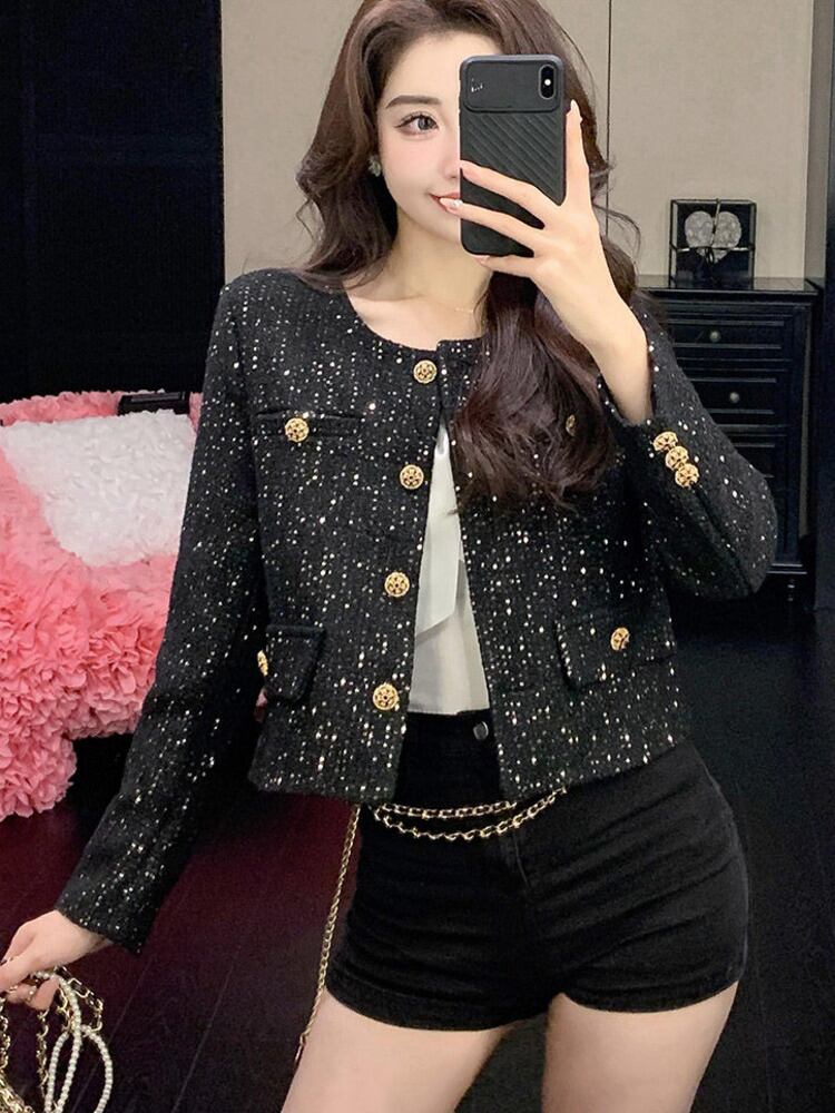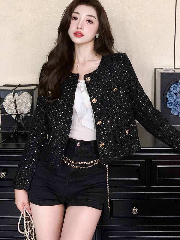 スモール フレグランス ツイード ジャケット コート レディース 秋 フリード ストリート ショート コート スパンコール アウター トップス オータム 秋物 mes8575717264