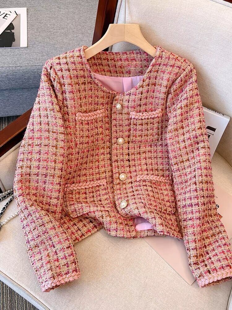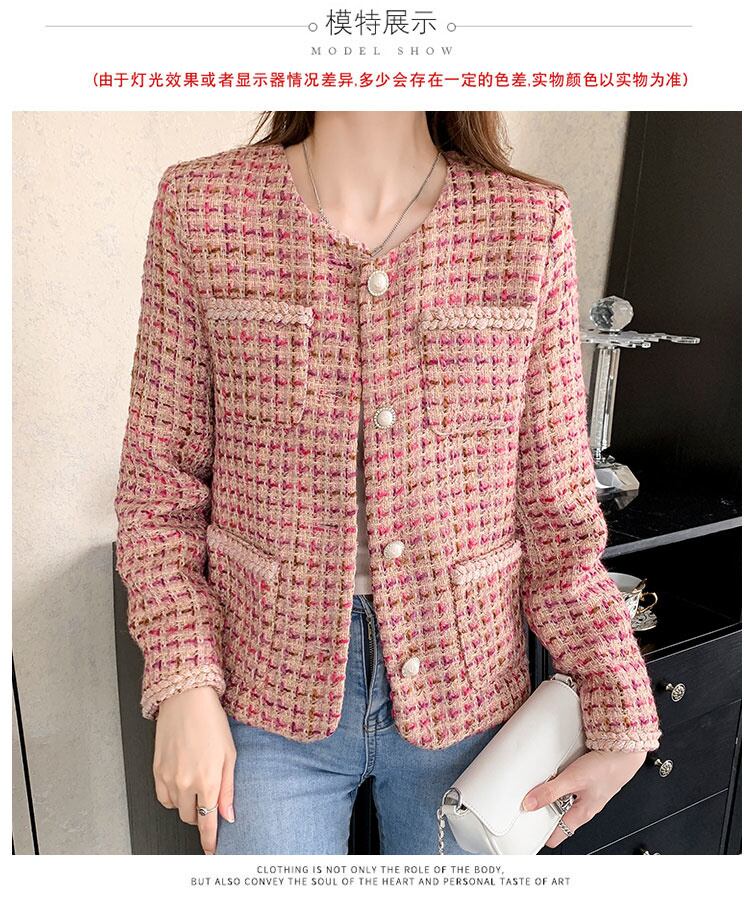 フレンチウィンタージャケットレディーススモールフレグランスチェック柄ツイードコートチャケータオールマッチアウターウェア 冬物 mes29337524165