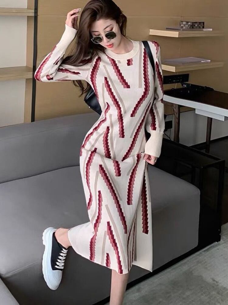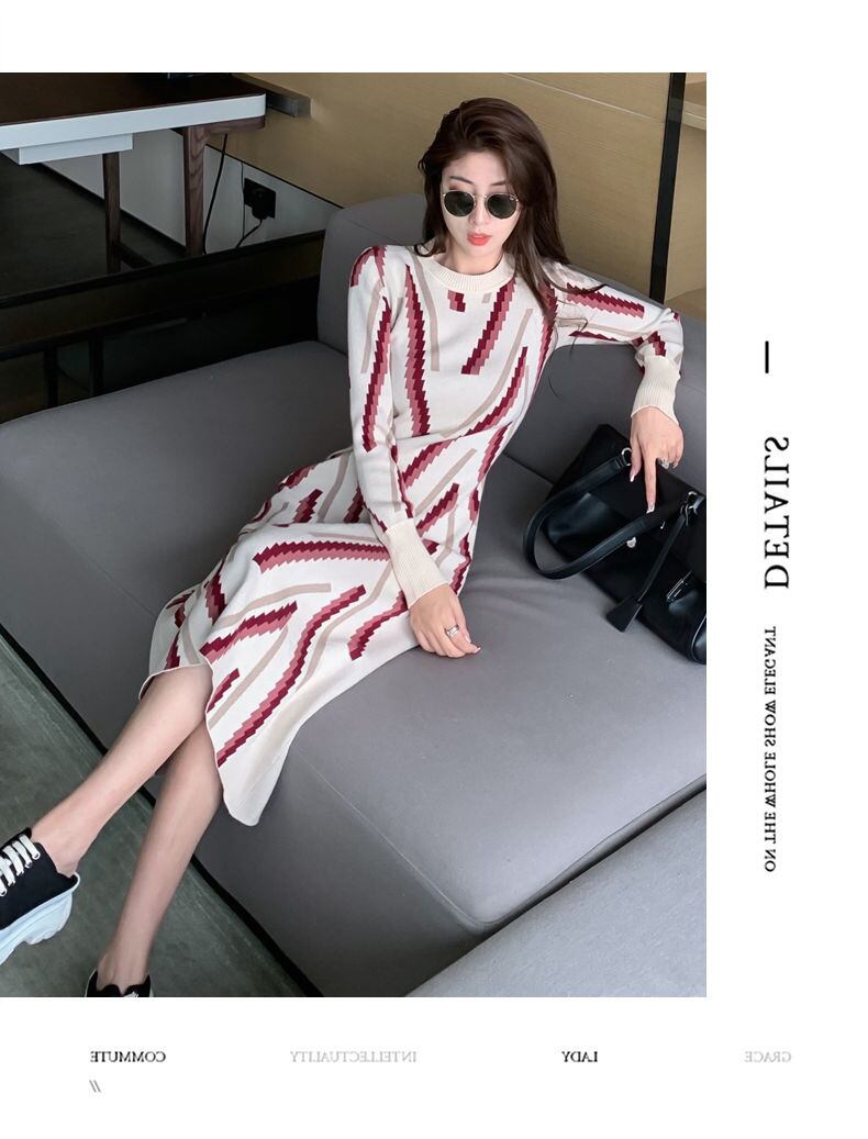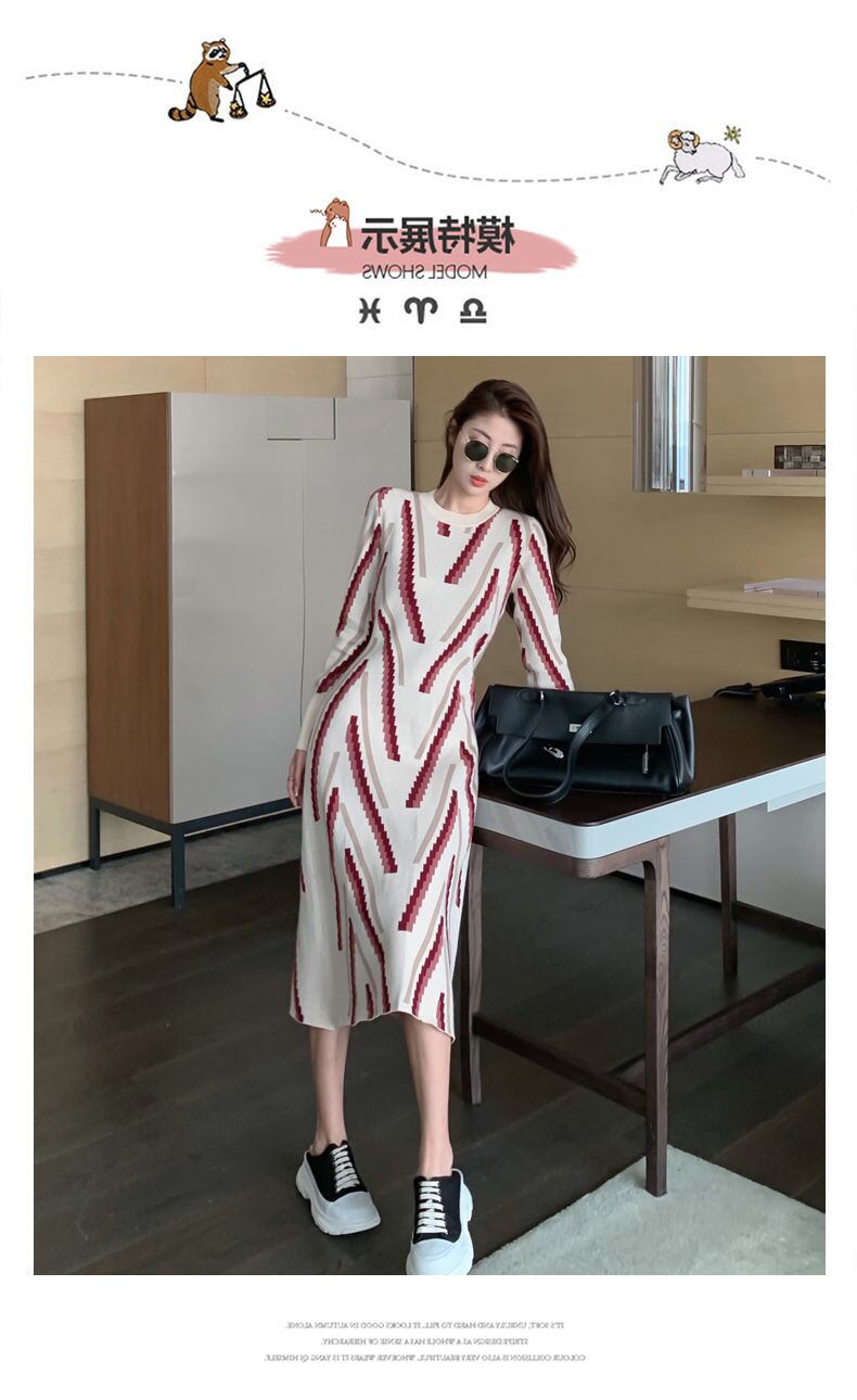 秋冬ストライプニットドレス女性スリムセーターロングドレスパーティーローブ Vestidos オータム 秋物 ウィンター 冬物 mes76397872732