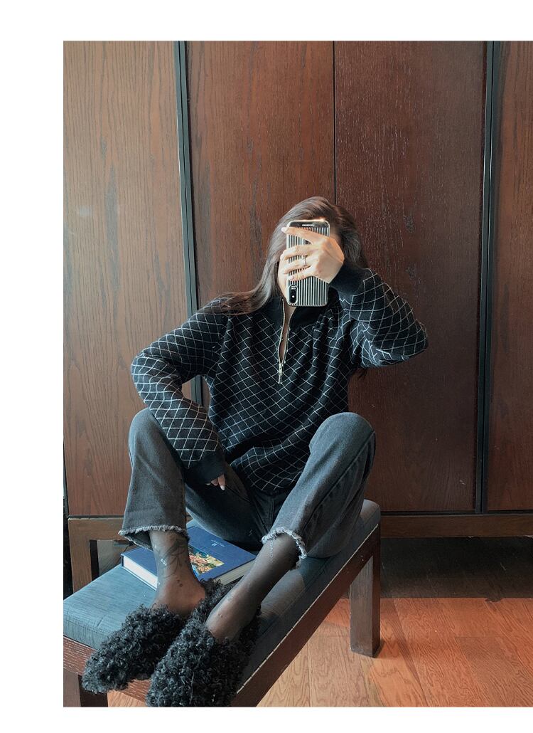 秋冬チェック柄トラックスーツ女性ルーズセータートップス & ワイドレッグパンツスーツニットスポーツ 2 ピーススーツセット オータム 秋物 ウィンター 冬物 ワイドパンツ mes83785106454