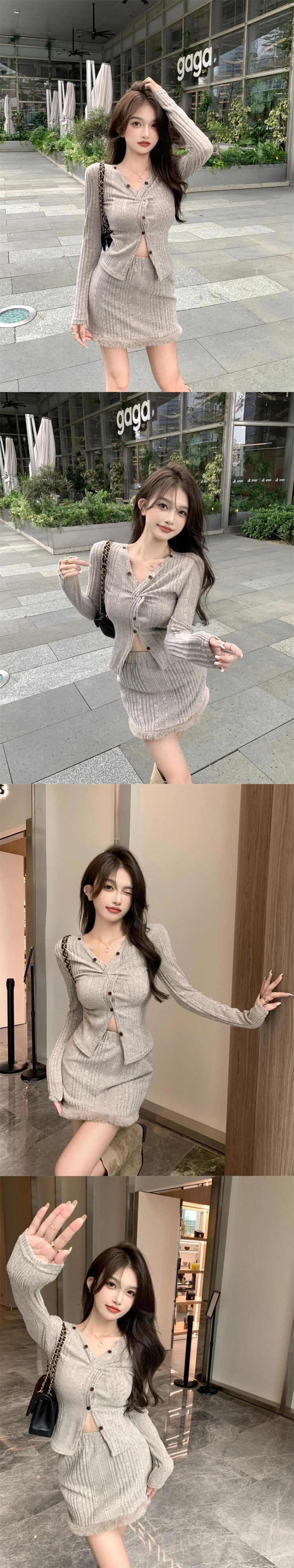 スイートニットツーピースセット女性衣装秋冬シックなカーディガントップ + ボディコンスカート 2 ピーススーツ 大人ガーリー スウィート キュート カジュアル オータム 秋物 ウィンター 冬物 mes73199719467