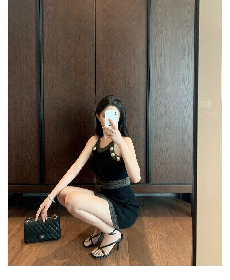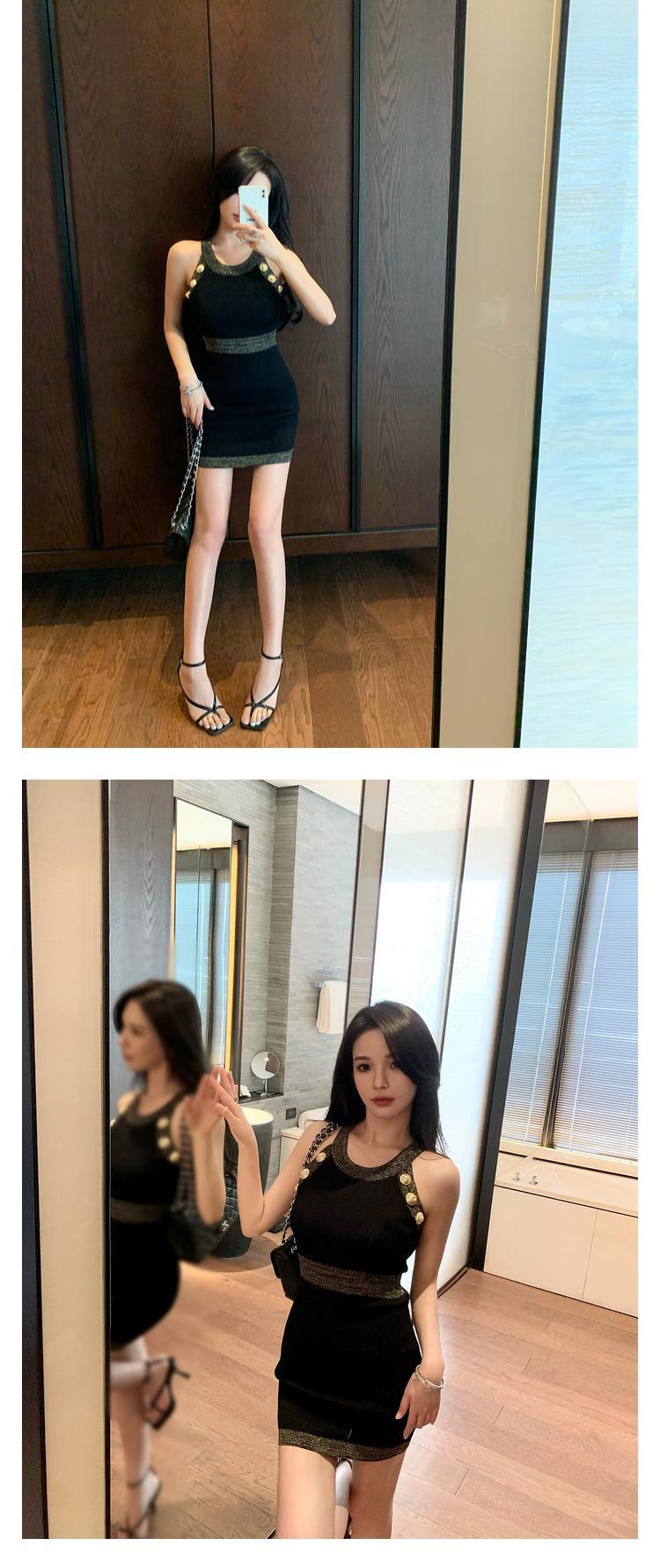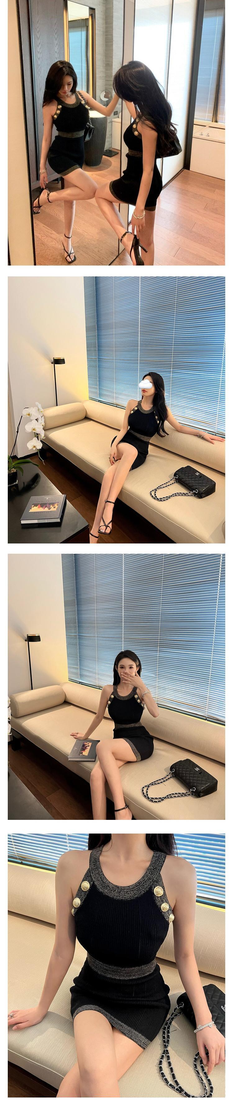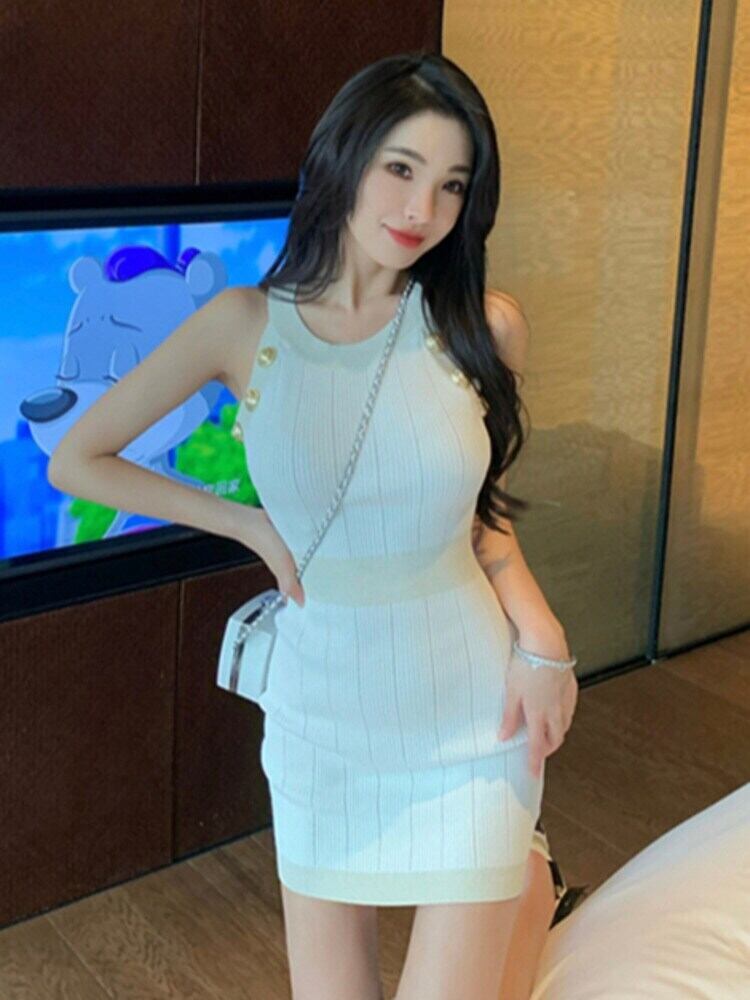 ボタンの詳細ノースリーブ ニット ボディコン ドレス女性サマー ドレス Hotsweet ショート ドレス 大人ガーリー スウィート キュート カジュアル 夏物 mes47604161447