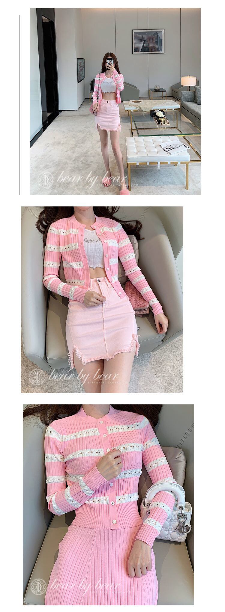 ストライプ ニット 2 点セット女性セーター カーディガン トップス + ロング スカート セット甘いツーピース スーツ 大人ガーリー スウィート キュート カジュアル mes97583936946