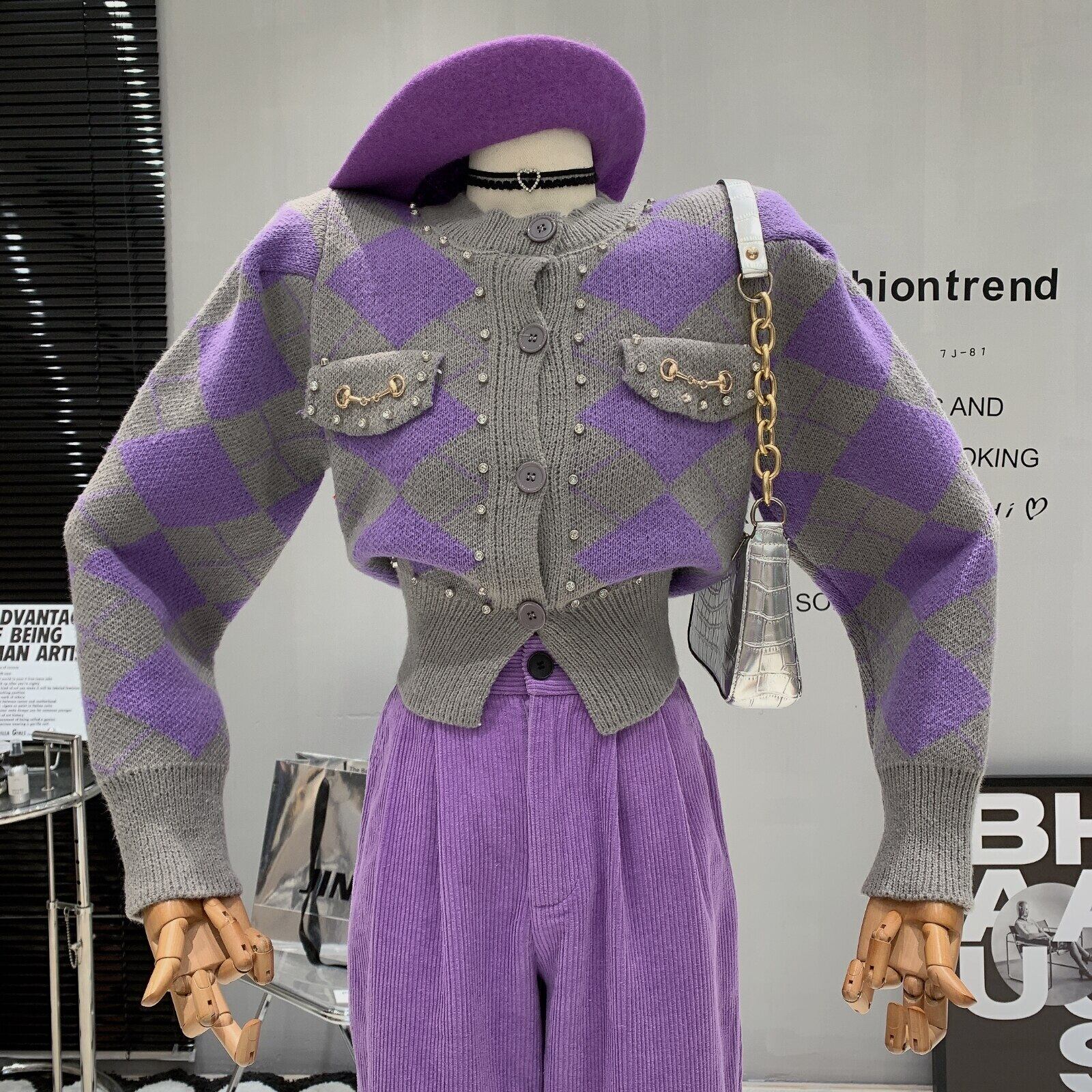 ショート ニット コート トップ高級ダイヤモンド セーター カーディガン女性の冬のセーター デ プル ウィンター 冬物 mes78253249902