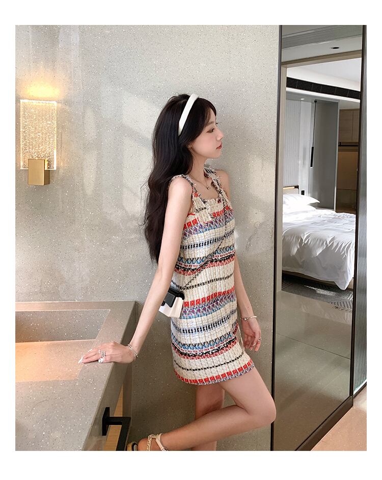 ラグジュアリースモールフレグランスツイードドレス女性電話タンクサマードレスミニローブvestidos 夏物 mes11407336035
