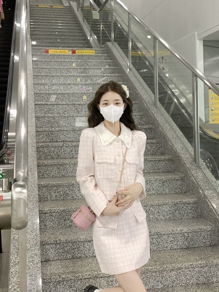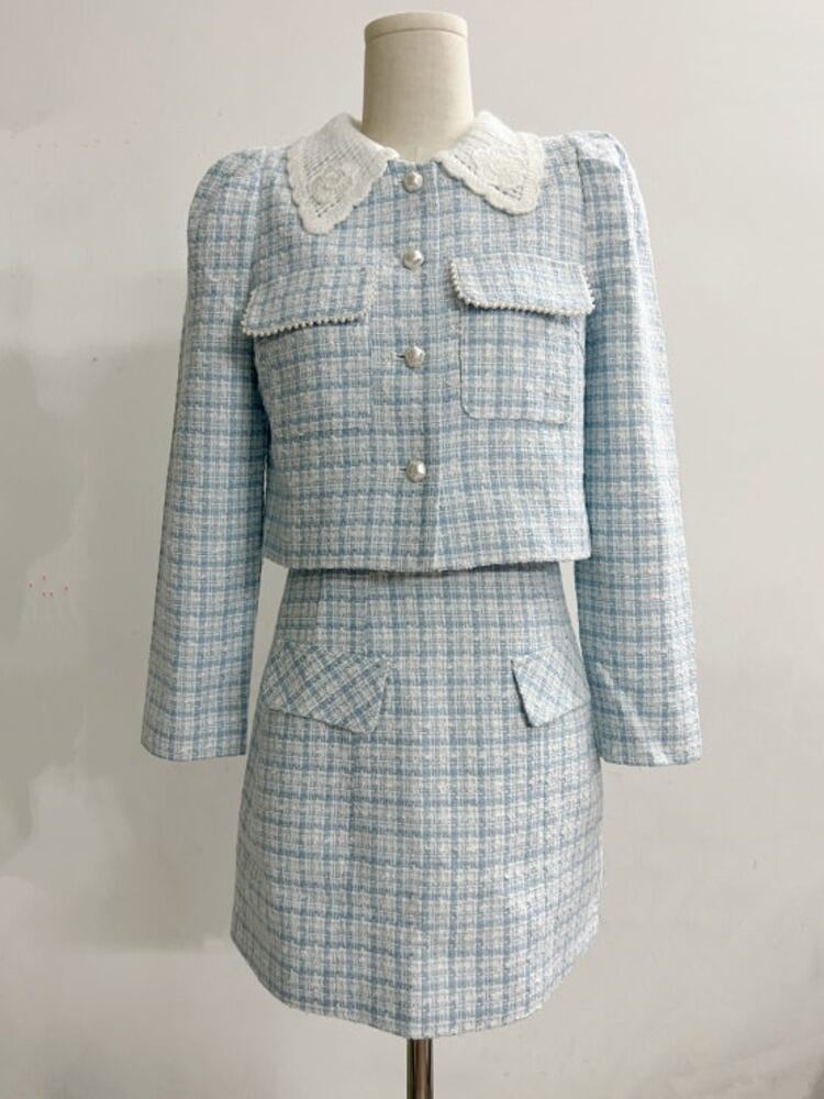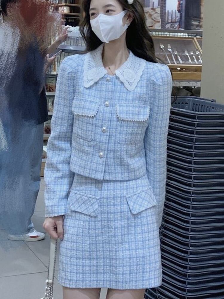 秋のツーピースセットレディース衣装ツイードコートクロップトップ + スカートスーツ conjuntos feminino エレガンテアンサンブルファム エレガント オータム 秋物 フェミニン mes2319200957
