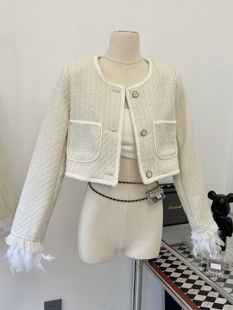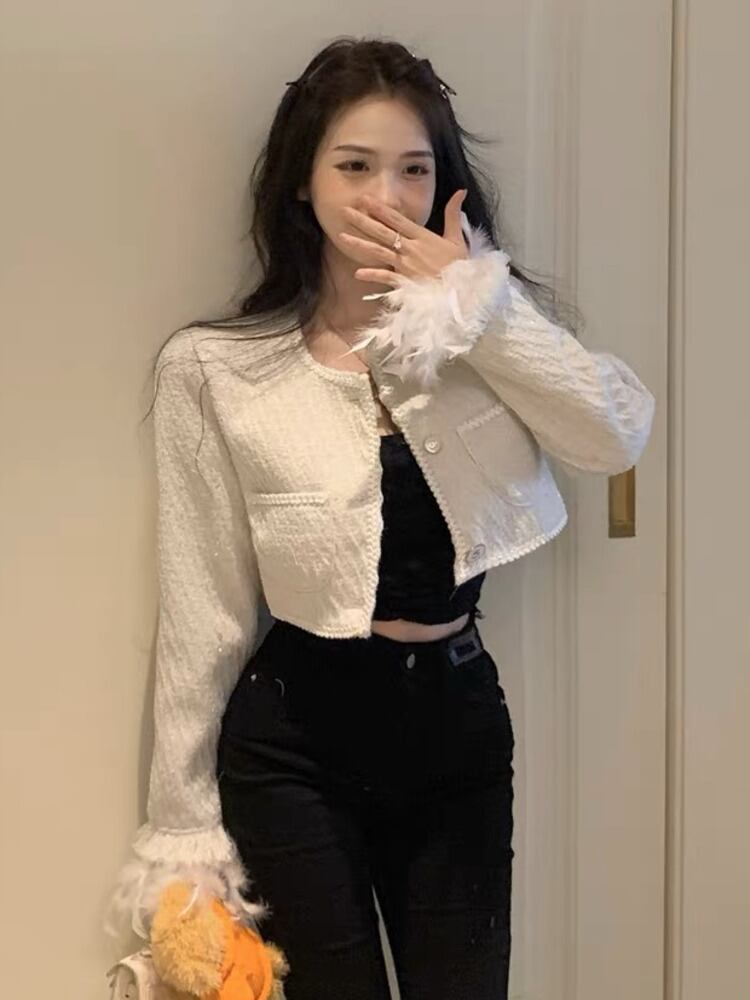 甘い小さなフレグランスジャケットコート女性春秋の羽の冬のコートショート生き抜くトップ Casaco 大人ガーリー スウィート キュート カジュアル スプリング 春物 オータム 秋物 ウィンター 冬物 mes8714034741