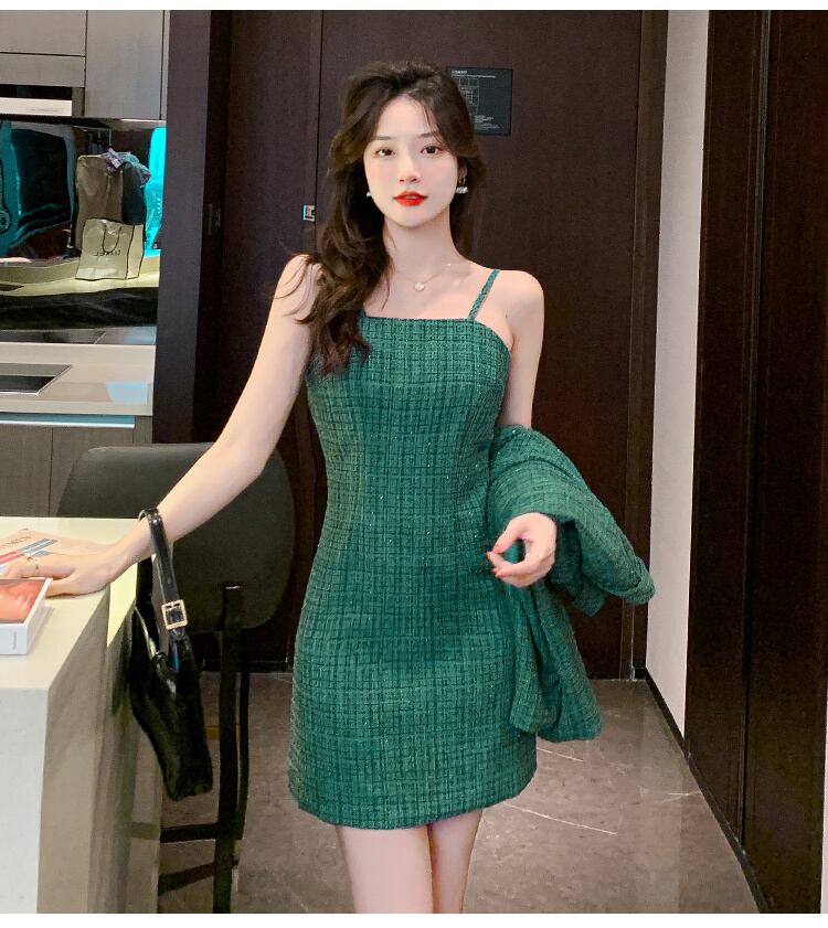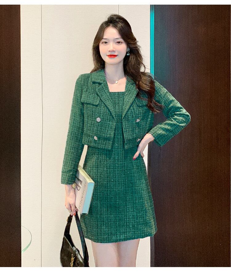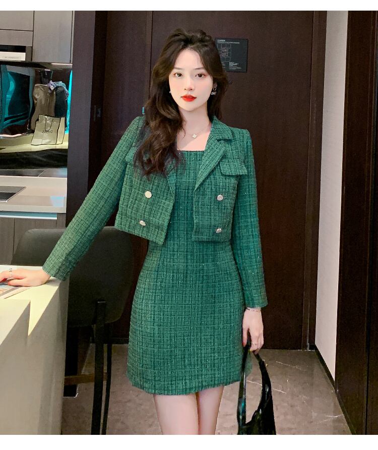 小さなフレグランス ツイード ツー ピース セット女性ショート ジャケット コート + セクシーなドレス スーツ 2 ピース セット mes9565589537