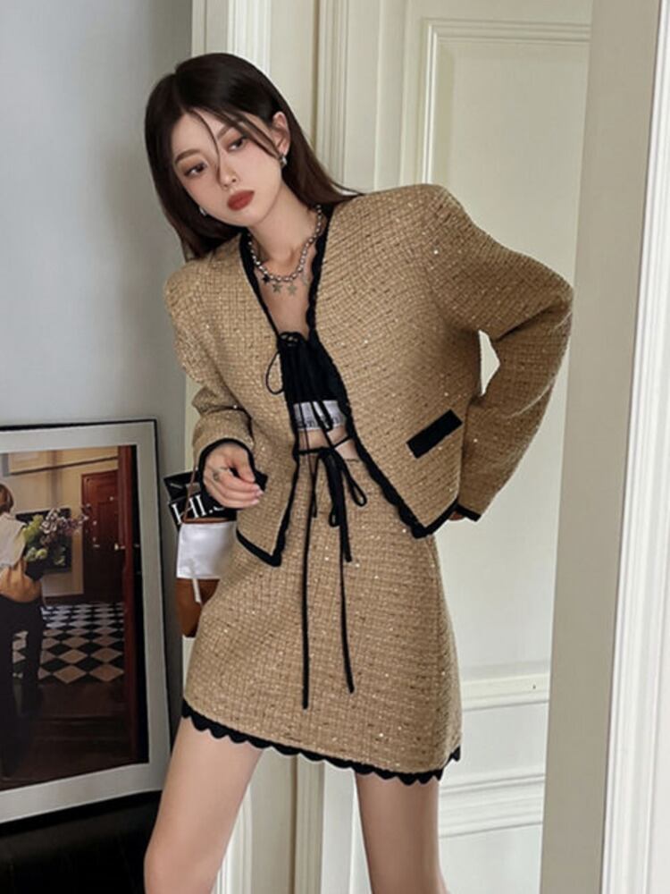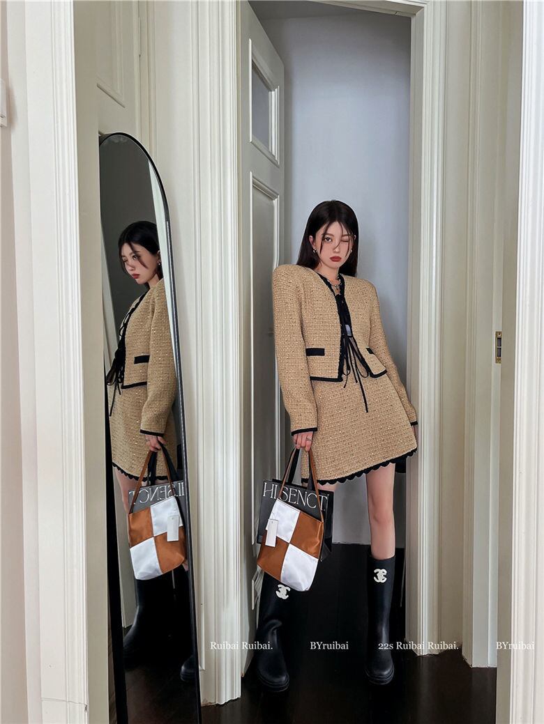 フレンチ スモール フレグランス ツイード 2点セット レディース ジャケット コート + スカート スーツ ストリート ツーピース セット mes48523878666