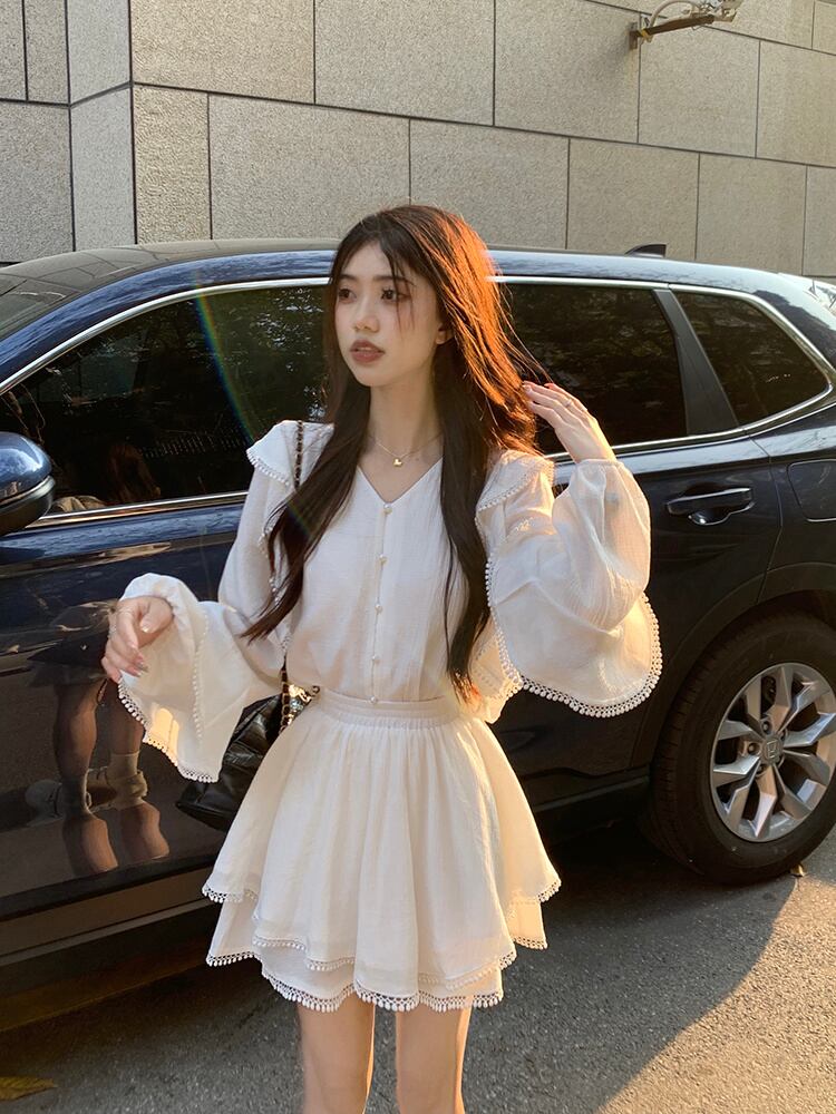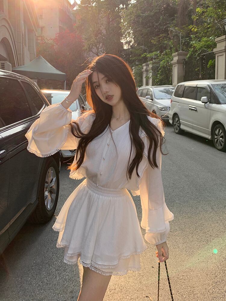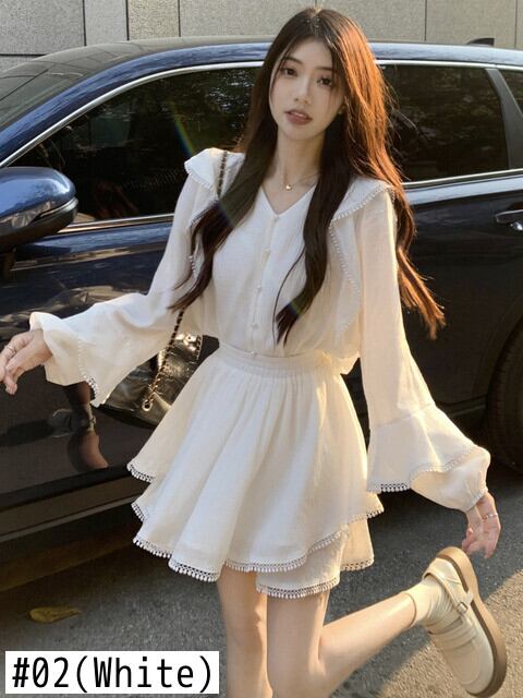 春休みビーチ 2 点セット女性衣装ルーズ シャツ ブラウス + A ライン スカート スーツ ストリート 2 点セット スプリング 春物 Aライン mes92796971190