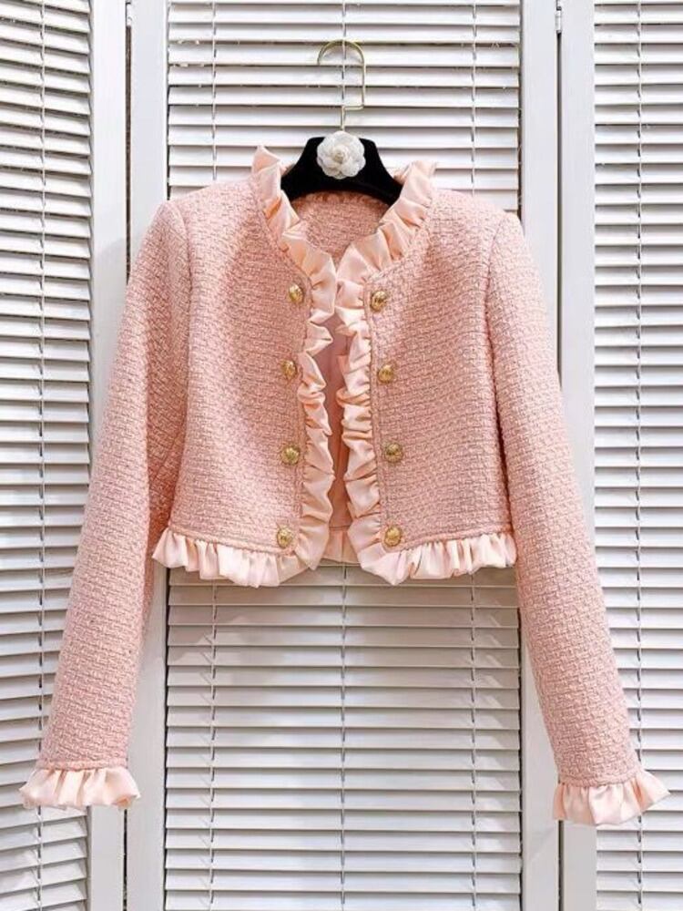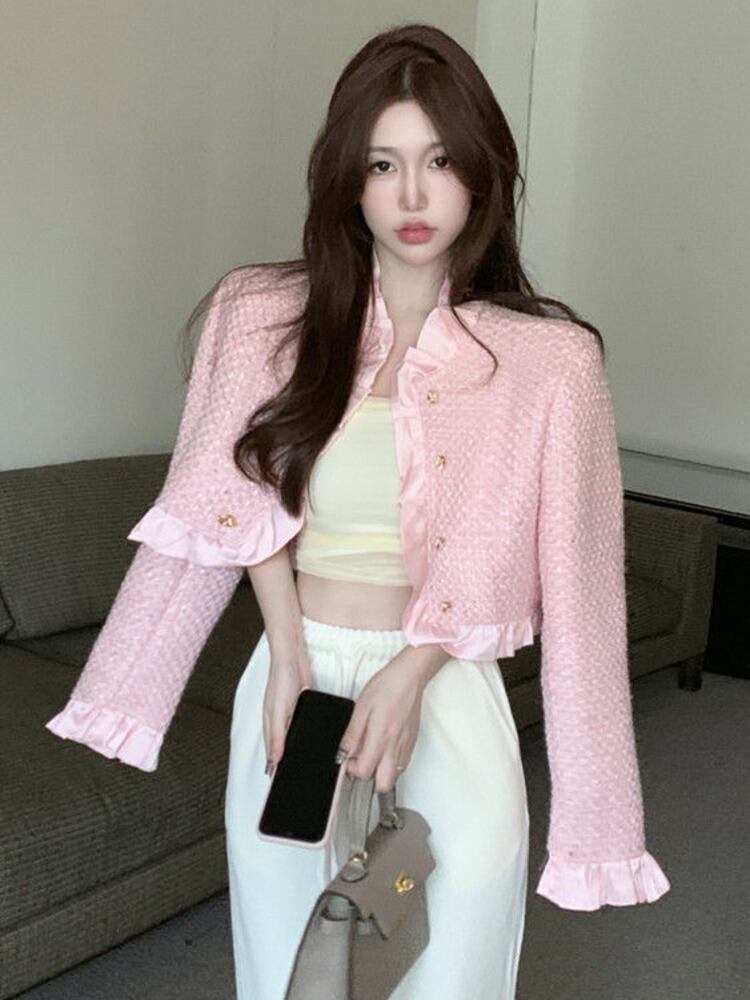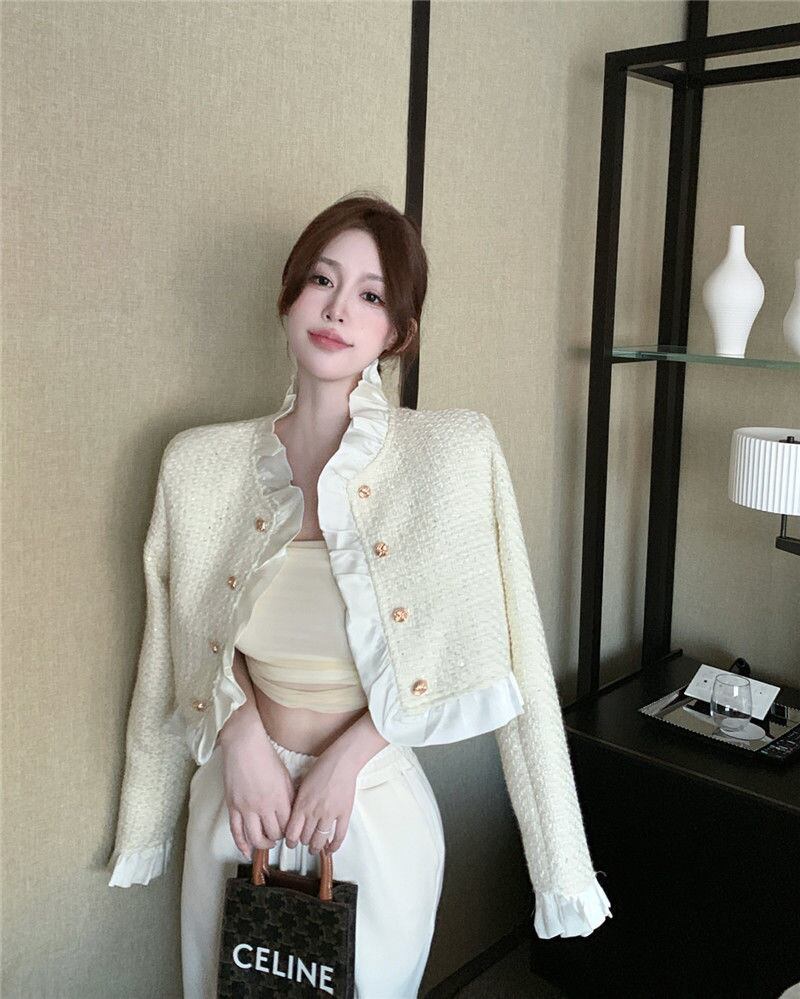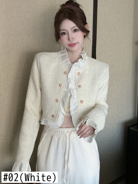 小さな香りツイードジャケットコート女性秋冬スウィートショートコートウール生き抜くトップス 大人ガーリー キュート カジュアル オータム 秋物 ウィンター 冬物 mes27461385619