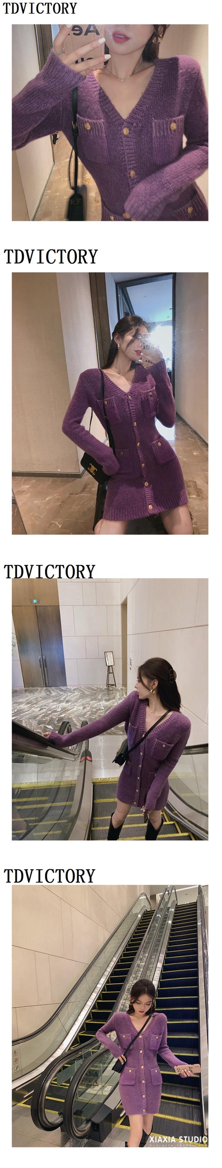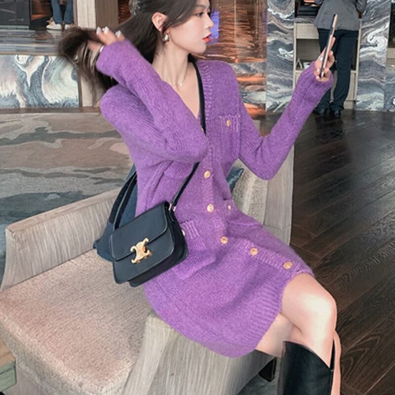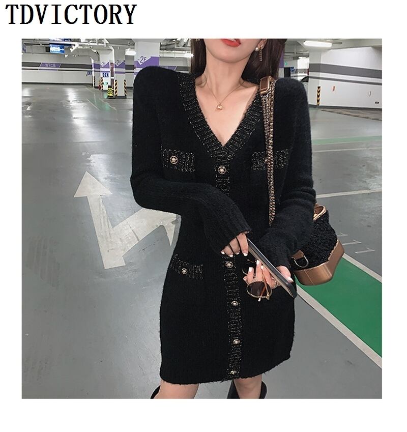 スウィートシックなニットセータードレス女性スモールフレグランスシングルブレストスリムミニドレスパーティーローブ Vestidos 大人ガーリー キュート カジュアル mes26156816383