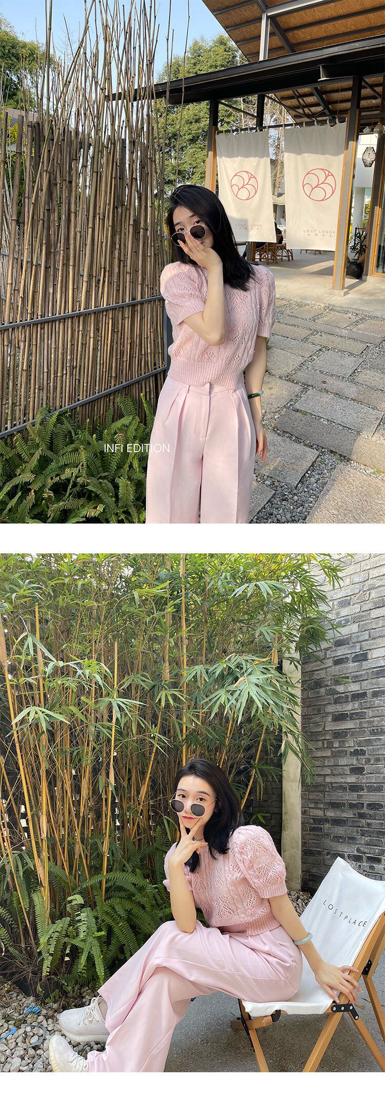 夏の甘いニットセーターの女性中空アウトプルオーバー薄いニットトップ女の子ジャンパープル 大人ガーリー スウィート キュート カジュアル サマー 夏物 mes52438878688