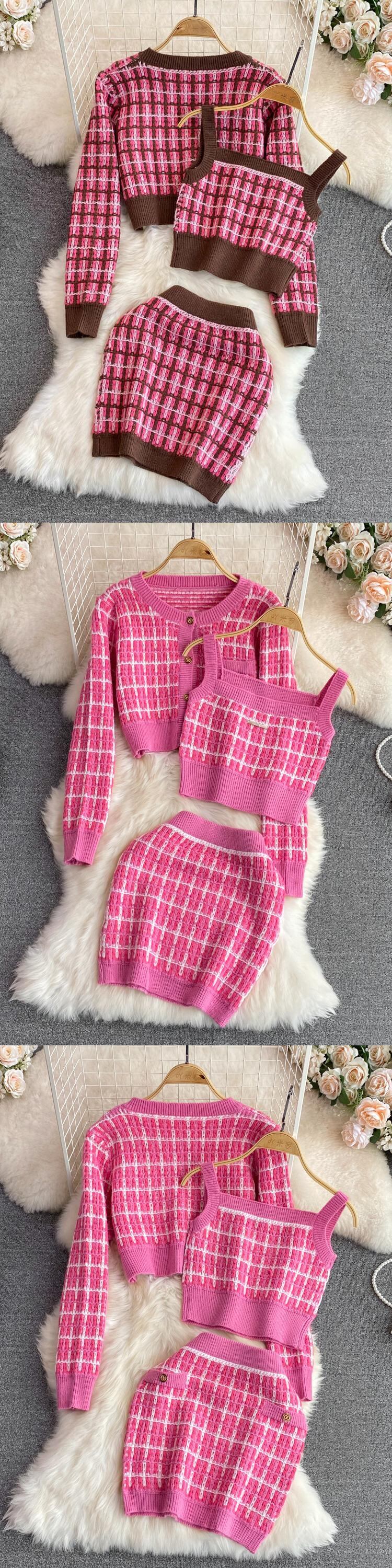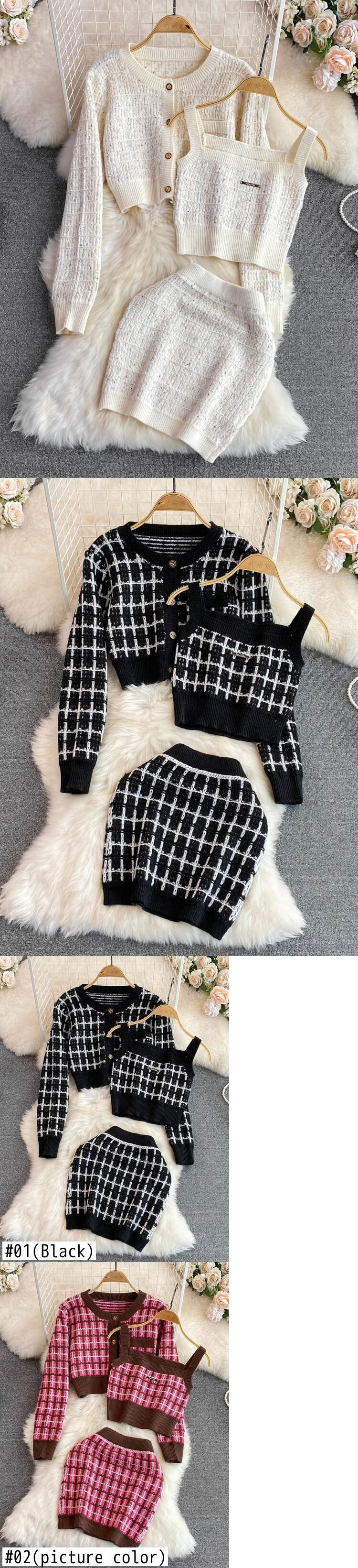 小さなフレグランス ニット 3 価格セット女性スウィート セーター 3 点セット秋冬スカート スーツ 大人ガーリー キュート カジュアル ウィンター 冬物 mes7684291545