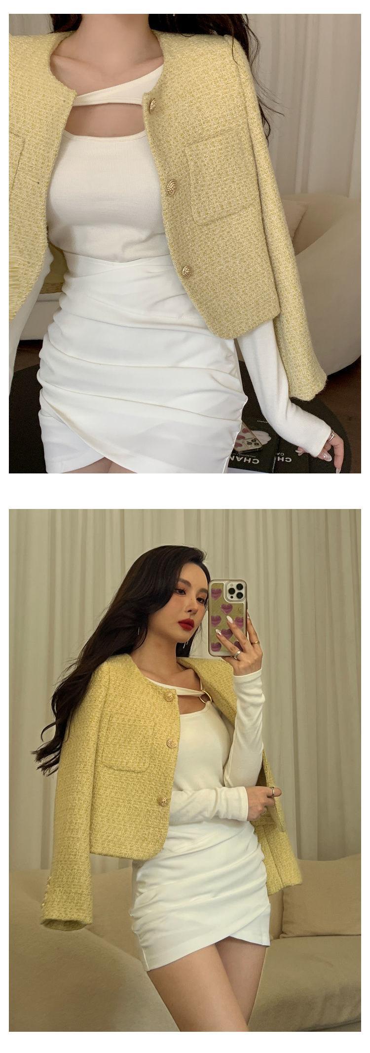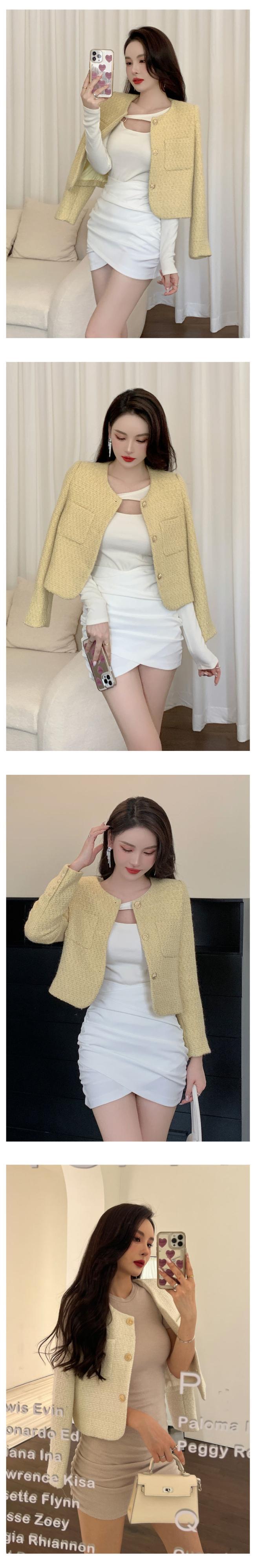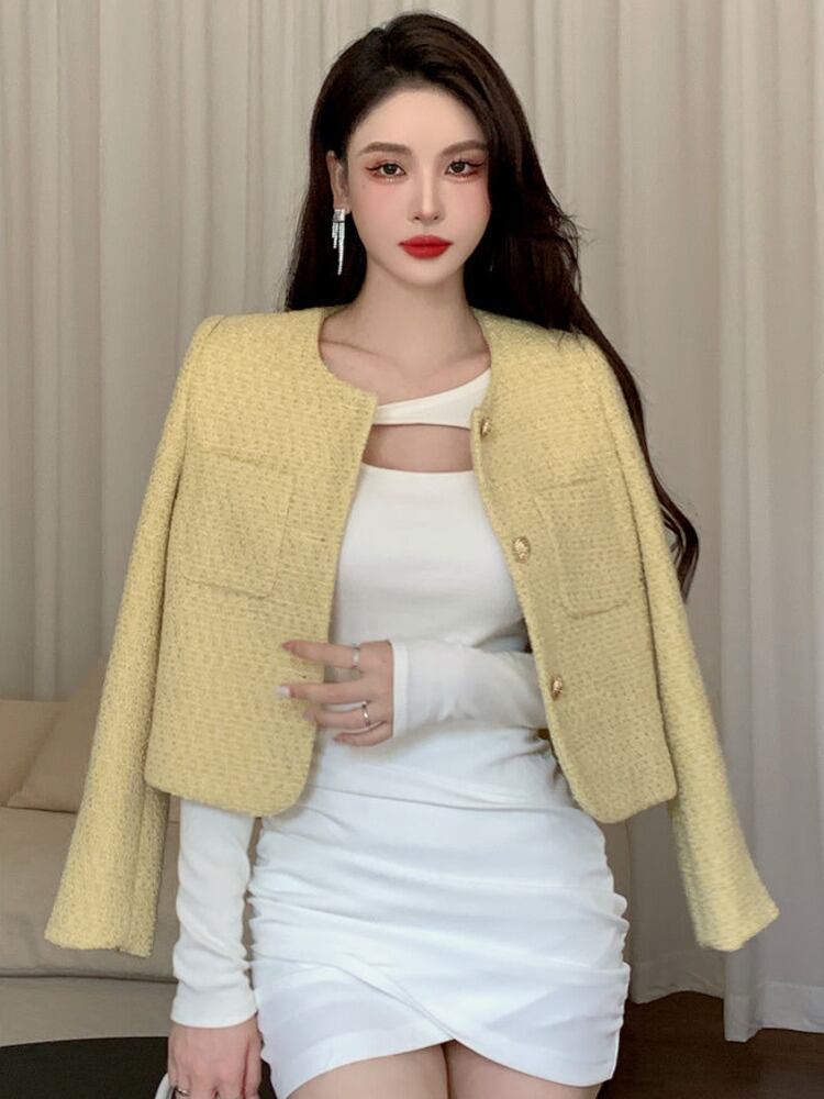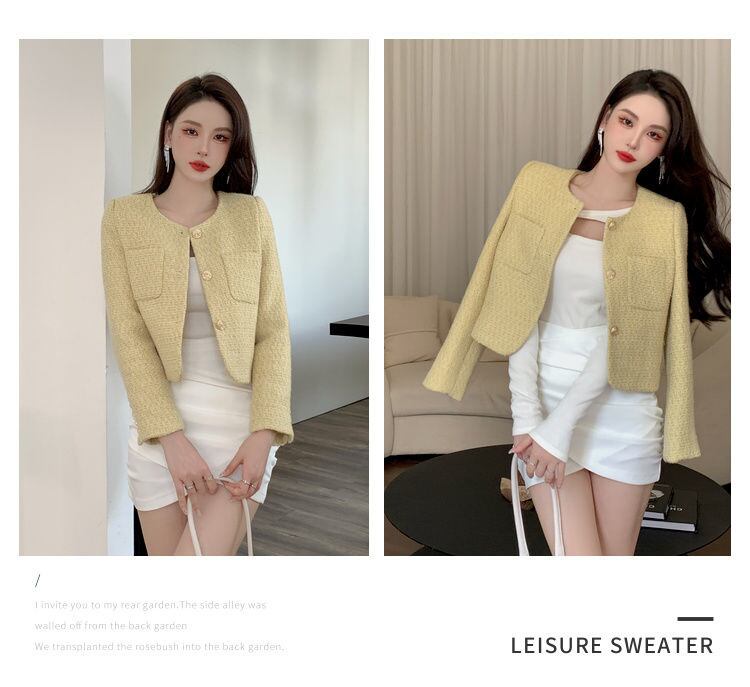フレンチシックなスモールフレグランスコート女性秋冬スリムツイードジャケットウールショートアウタートップ オータム 秋物 ウィンター 冬物 mes90349093343