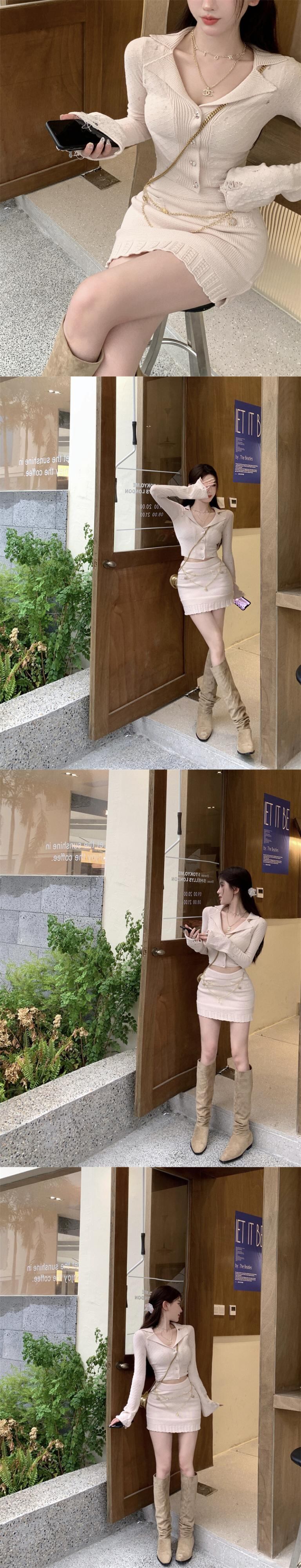 甘いニットツーピースセット女性服小さなフレグランスカーディガントップ + ボディコンスカート 2 ピーススーツ 大人ガーリー スウィート キュート カジュアル mes36992114496