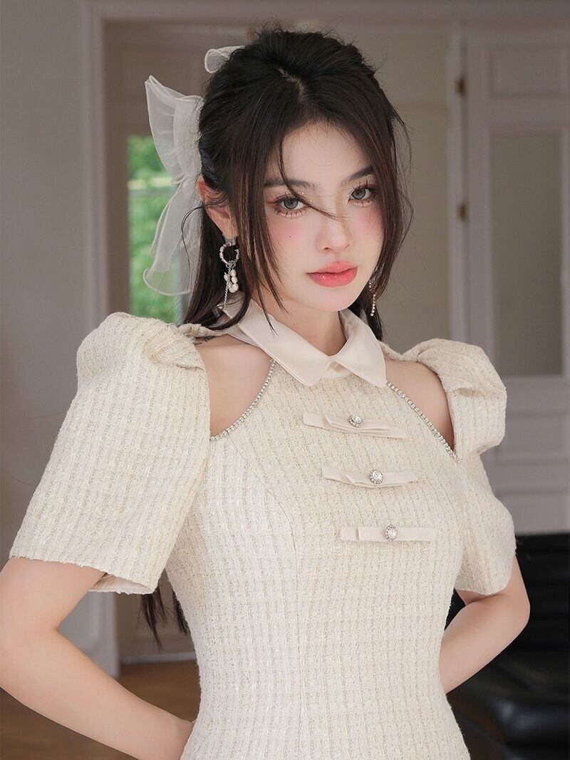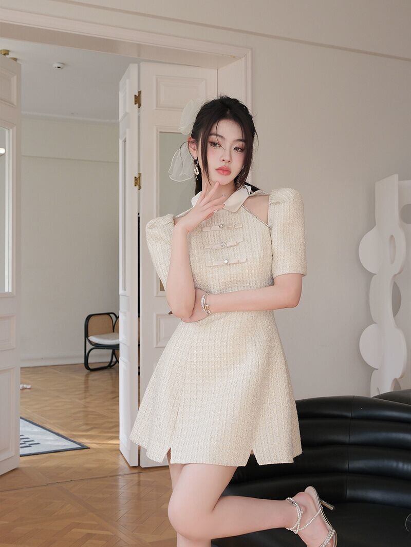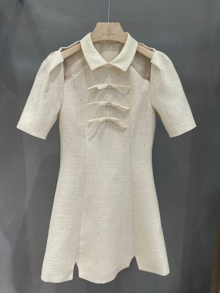 夏の高級フレンチスモールフレグランスツイードドレス女性スウィートパーティードレスミニ Vestidos 大人ガーリー キュート カジュアル サマー 夏物 mes34299000468