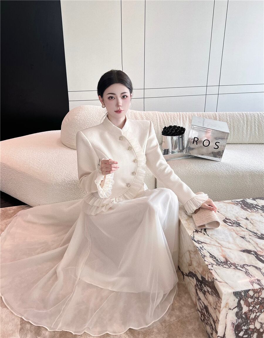 小さなフレグランス 2 点セット女性ジャケット コート + メッシュ ロング スカート スーツ ストリート 2 点セット mes64375187692