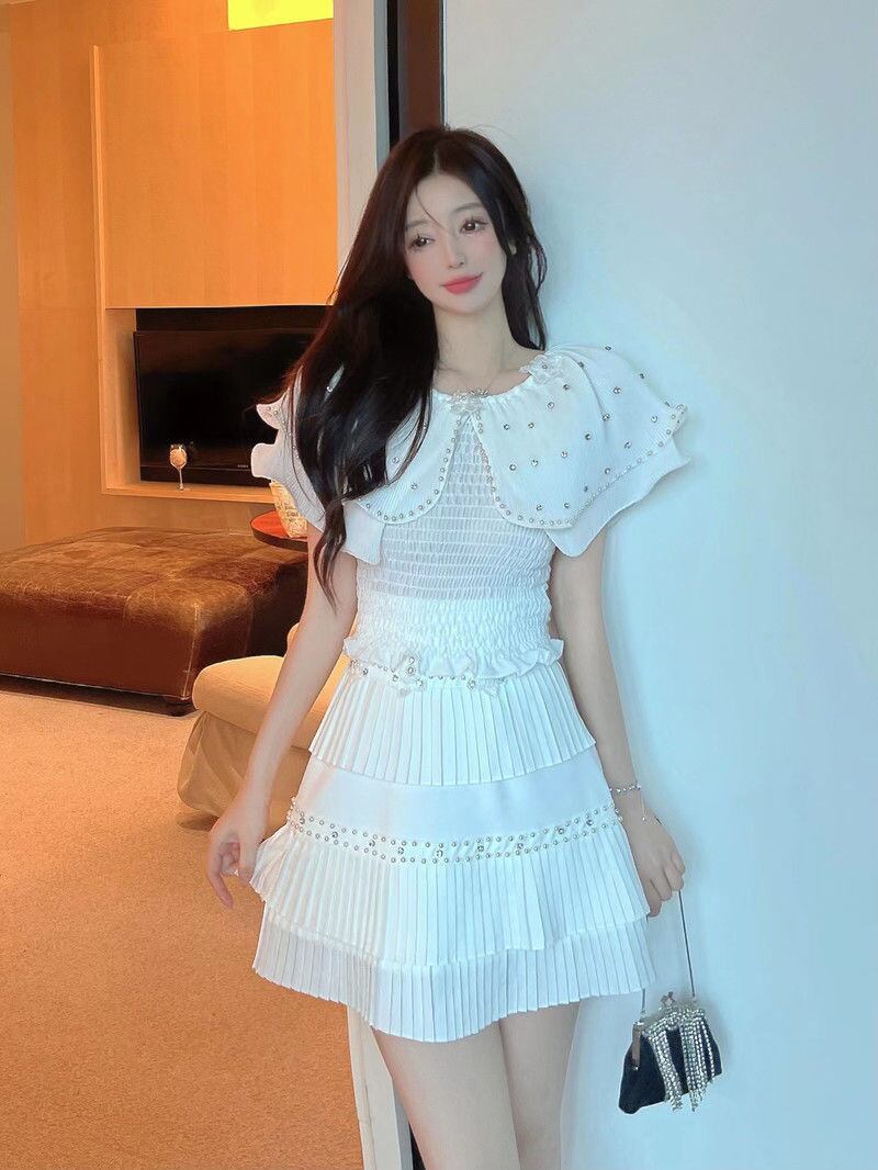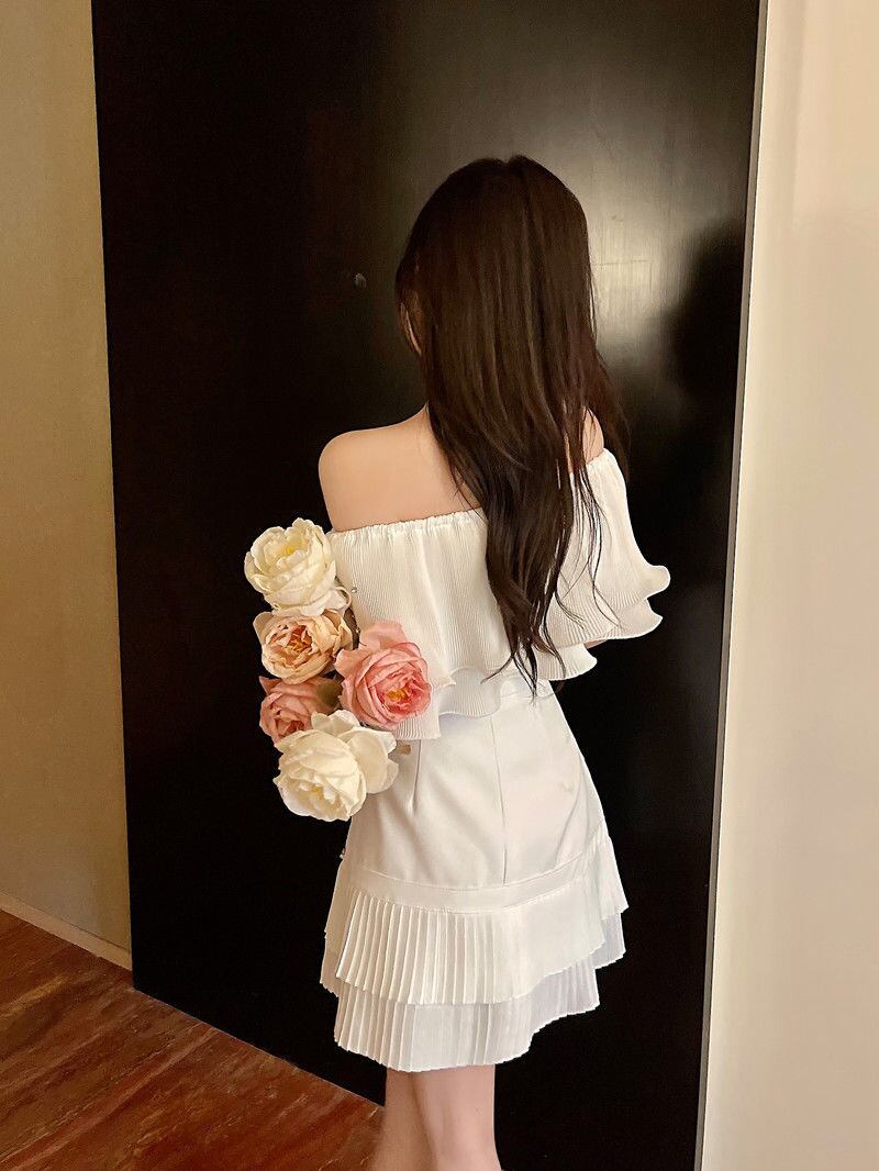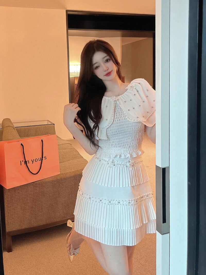 小さな香りの 2 ピース衣装女性シャツブラウスクロップトップ + スカートセット夏の妖精甘いツーピースのスーツ 大人ガーリー スウィート キュート カジュアル サマー 夏物 mes68206244446