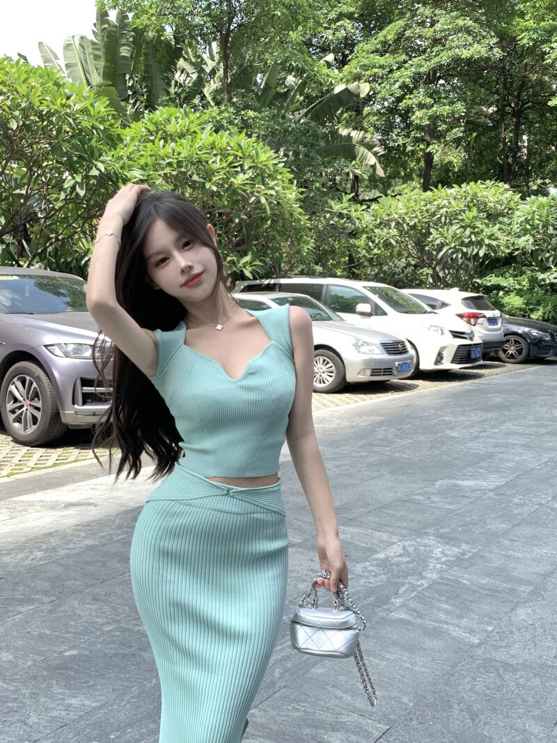 HotSweet 女の子ニットツーピースセット女性クロップトップ + ボディコンミディスカートスーツ包帯 2 点セットセクシーなパーティークラブ 大人ガーリー スウィート キュート カジュアル mes85296750707