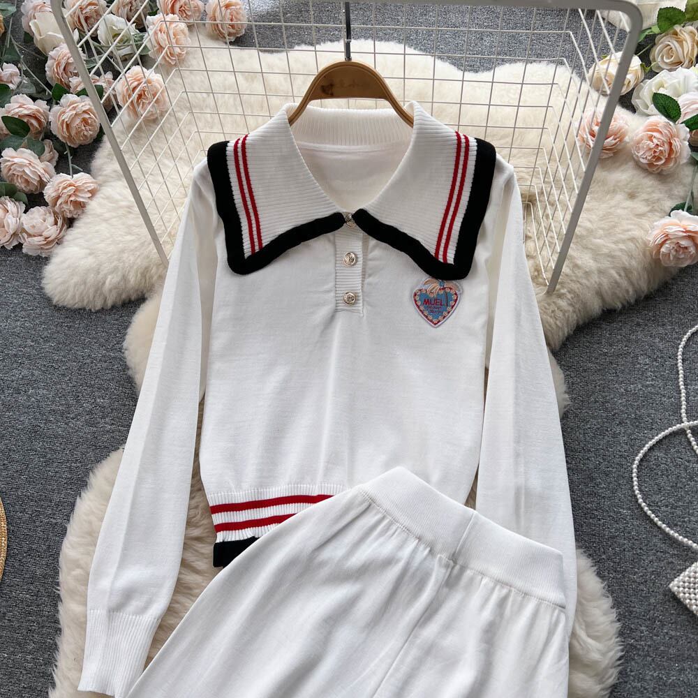 小さなフレグランストラックスーツ女性ツーピースセット秋冬ニットセーターカーディガントップ + パンツ 2 ピーススーツ オータム 秋物 ウィンター 冬物 mes68867991326