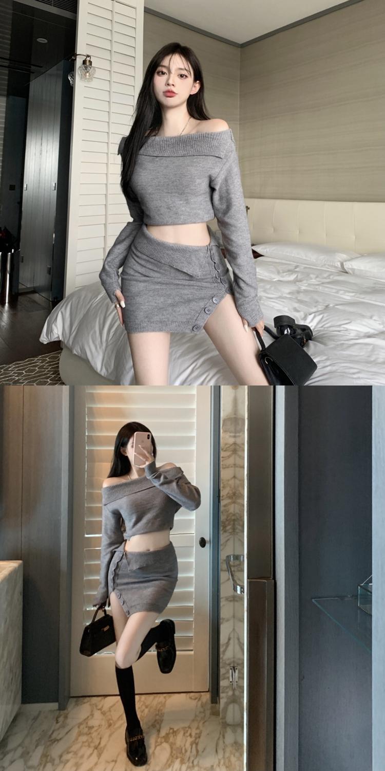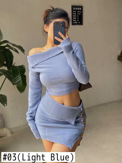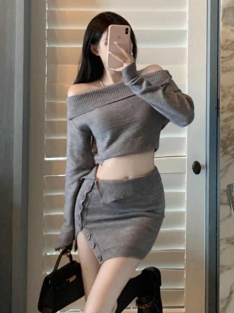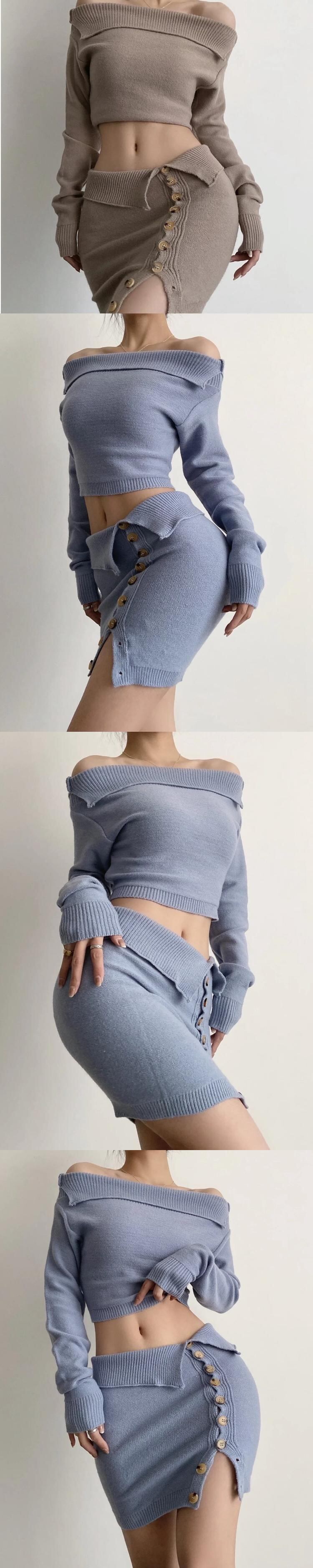 ニットツーピースセット女性のセクシーなセータークロップトップ + ボディコンスカートセットストリート Hotsweet 2 ピーススーツ 大人ガーリー スウィート キュート カジュアル mes42323350846